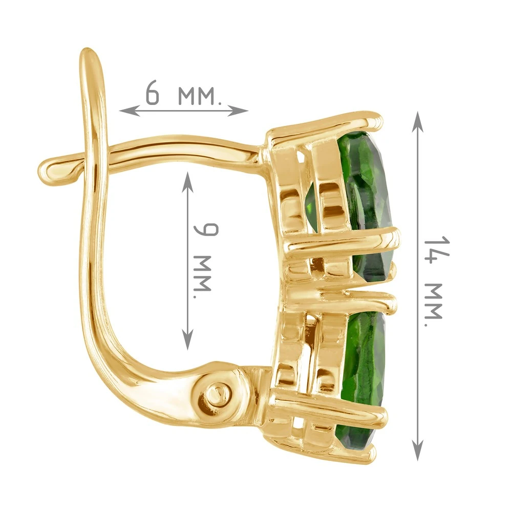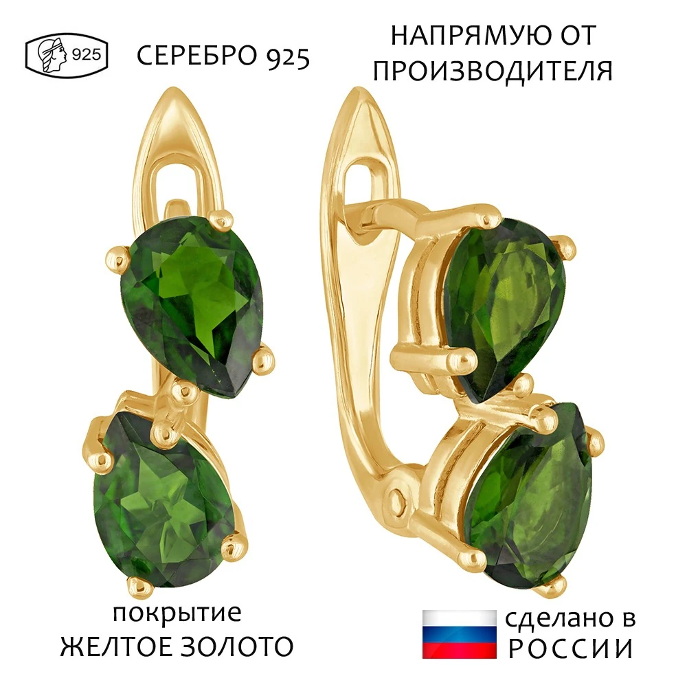 Серебряные серьги с натуральным хромдиопсидом - коллекция Дуэт / покрытие Желтое Золото.Средний вес украшения с камнями 2.98 гр.Месторождение(я): Хромдиопсид (Якутия, Россия).Ювелирные вставки:Хромдиопсид (Натуральный) груша 5*7 мм., средний вес: 0.75 карат.Все изделия собственного производства и имеют гарантию 12 месяцев. Арт. 8687YG . Диопсид богат на оттенки, и именно за многоликость получил такое название. Камень очищает энергетическое поле человека от негатива, стимулирует работу сердца. Ценился мистиками и магами за целую гамму положительных качеств.