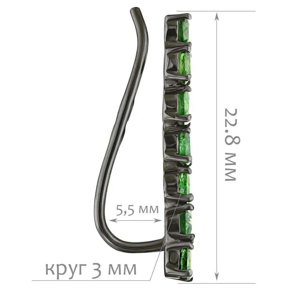Серебряные серьги каффы с натуральным хромдиопсидом - коллекция Волна / покрытие Черный Родий.Средний вес украшения с камнями 1.85 гр.Месторождение: Хромдиопсид (Якутия, Россия)Ювелирные вставки:Хромдиопсид (Натуральный) круг 3 мм., средний вес: 0.56 карат.Все изделия собственного производства и имеют гарантию 12 месяцев. Арт. 8754BR . Диопсид богат на оттенки, и именно за многоликость получил такое название. Камень очищает энергетическое поле человека от негатива, стимулирует работу сердца. Ценился мистиками и магами за целую гамму положительных качеств.