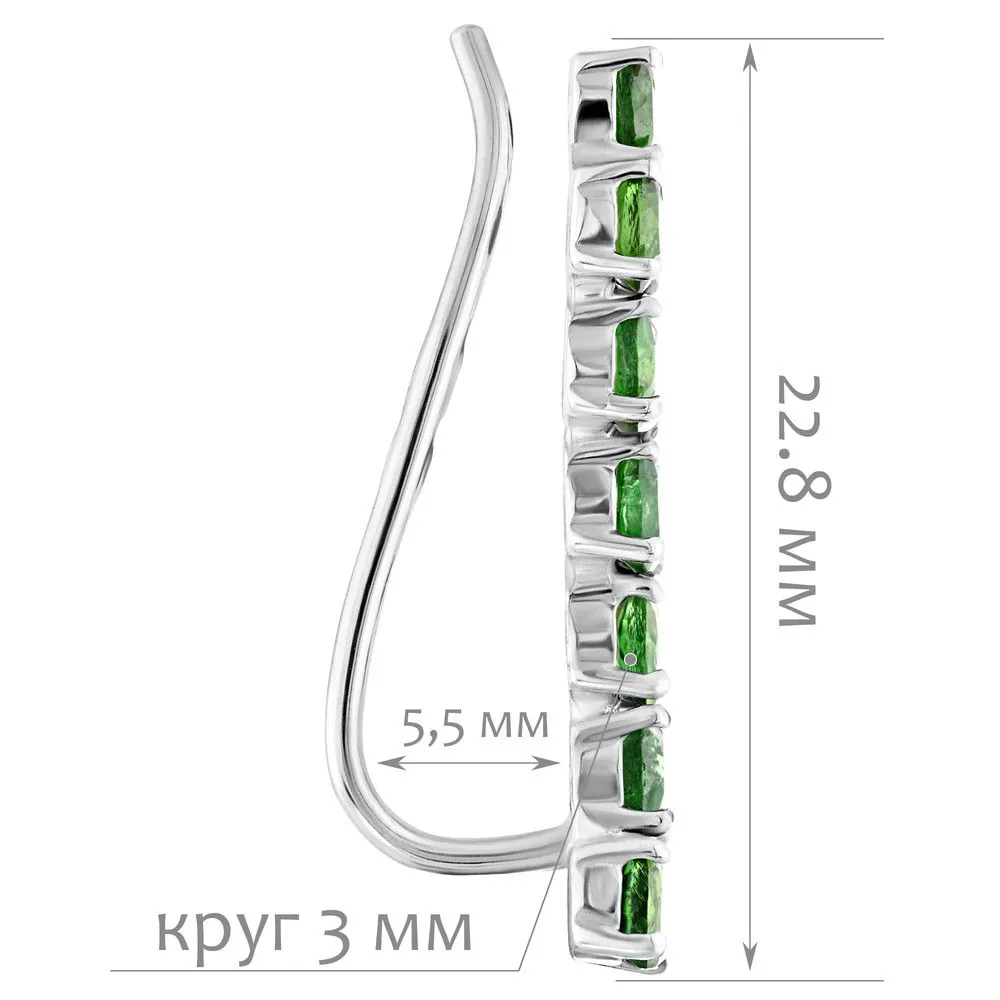 Серебряные серьги каффы с натуральным хромдиопсидом - коллекция Волна / Без покрытия.Средний вес украшения с камнями 1.74 гр.Месторождение: Хромдиопсид (Якутия, Россия)Ювелирные вставки:Хромдиопсид (Натуральный) круг 3 мм., средний вес: 0.48 карат.Все изделия собственного производства и имеют гарантию 12 месяцев. Арт. 8754NP . Диопсид богат на оттенки, и именно за многоликость получил такое название. Камень очищает энергетическое поле человека от негатива, стимулирует работу сердца. Ценился мистиками и магами за целую гамму положительных качеств.