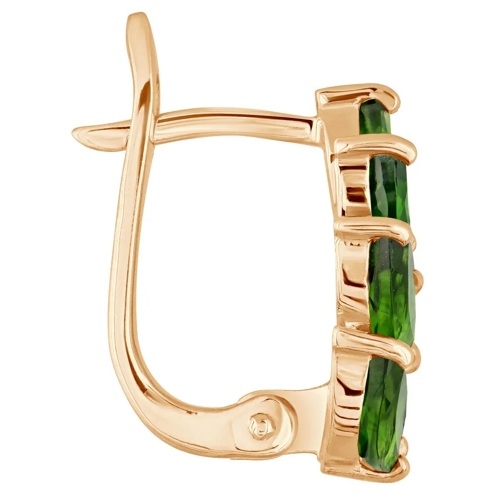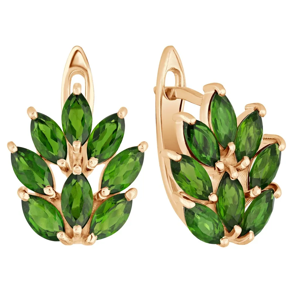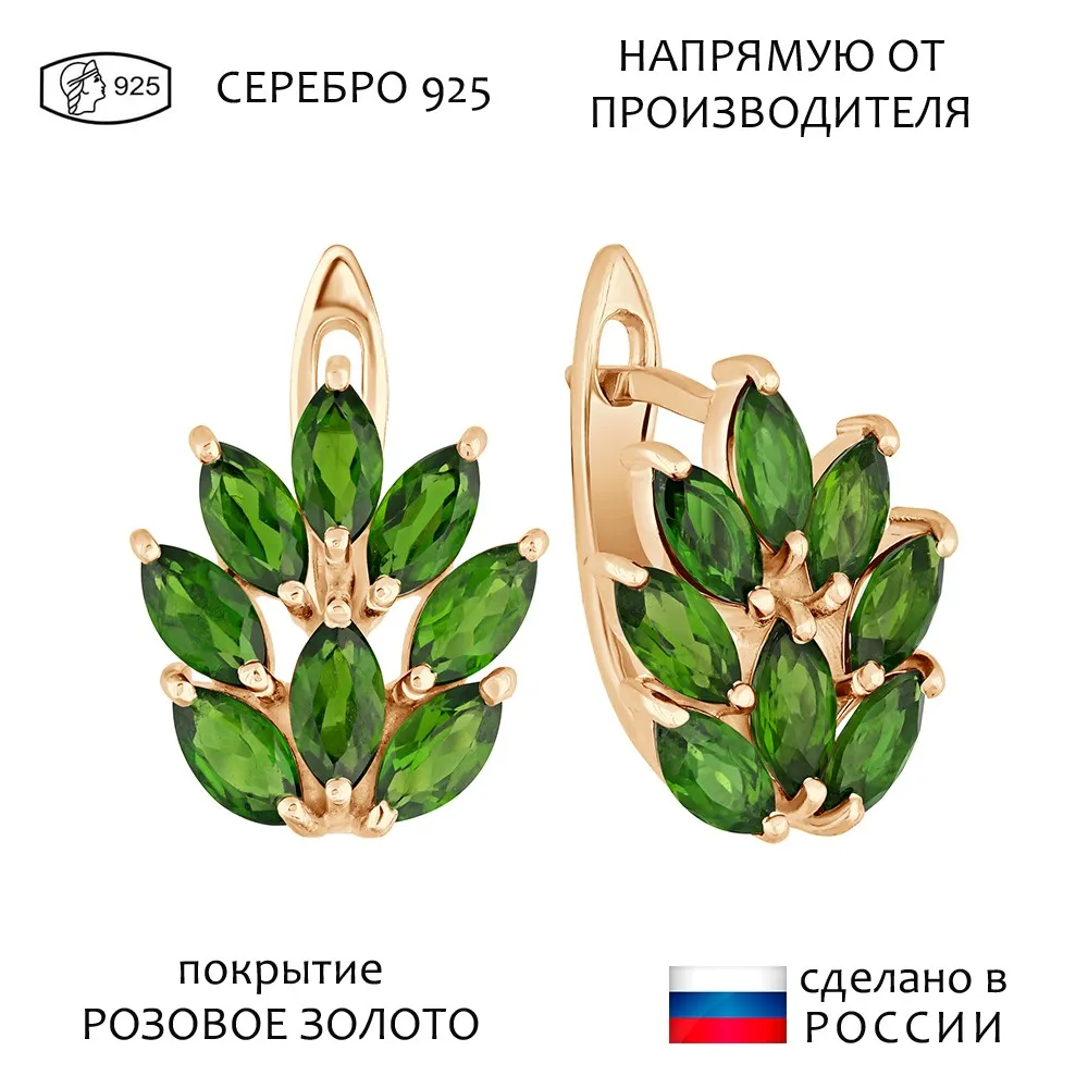 Серебряные серьги с натуральным хромдиопсидом - коллекция Искра / Розовое Золото.