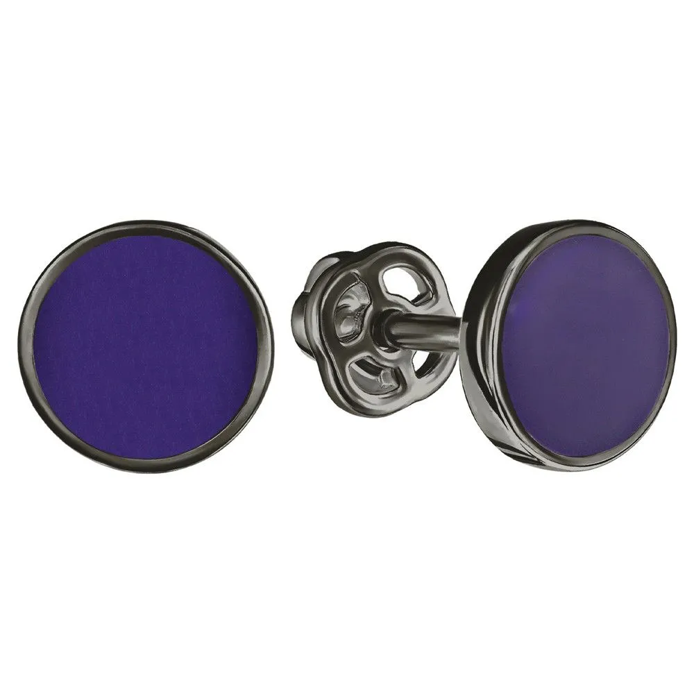 Серебряные серьги гвоздики (пусеты) с эмалью - цвет фиолетовый / Черный Родий. Средний вес ювелирного украшения 1.27 гр. Эмаль – холодная двухкомпонентная итальянская эмаль высокого качества. Имеет высокую степень устойчивости к царапинам и солнечному свету, ударам и механическим повреждениям.< /p> Все изделия собственного производства и имеют гарантию 12 месяцев. Арт. 8596BR.