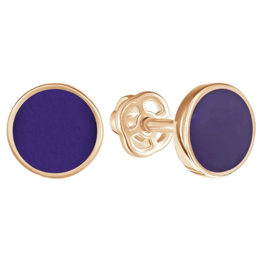 Серебряные серьги гвоздики (пусеты) с эмалью - цвет фиолетовый / Розовое Золото. Средний вес ювелирного украшения 1.27 гр. Эмаль – холодная двухкомпонентная итальянская эмаль высокого качества. Имеет высокую степень устойчивости к царапинам и солнечному свету, ударам и механическим повреждениям.< /p> Все изделия собственного производства и имеют гарантию 12 месяцев. Арт. 8596PG.
