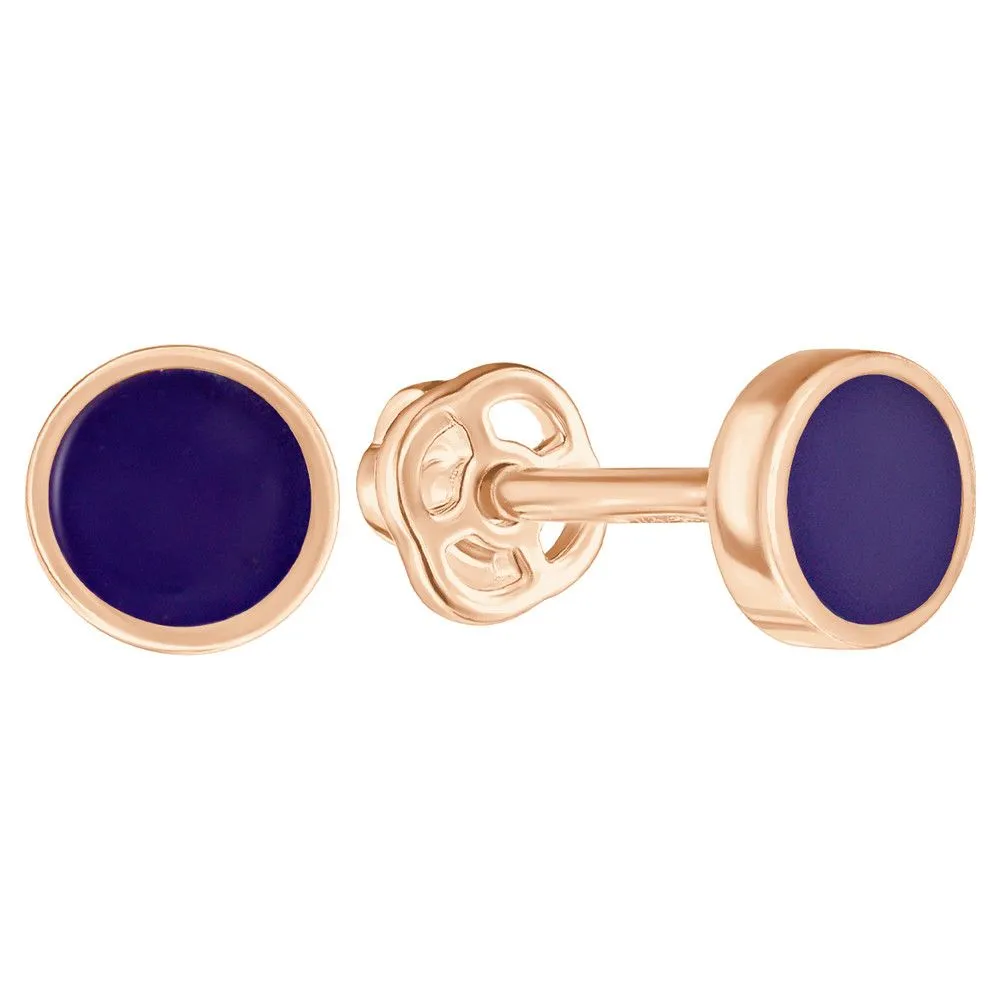 Серебряные серьги гвоздики (пусеты) с эмалью - цвет фиолетовый / Красное золото. Средний вес ювелирного украшения 0.86 гр. Эмаль – холодная двухкомпонентная итальянская эмаль высокого качества. Имеет высокую степень устойчивости к царапинам и солнечному свету, ударам и механическим повреждениям.< /p> Все изделия собственного производства и имеют гарантию 12 месяцев. Арт. 8612RG.