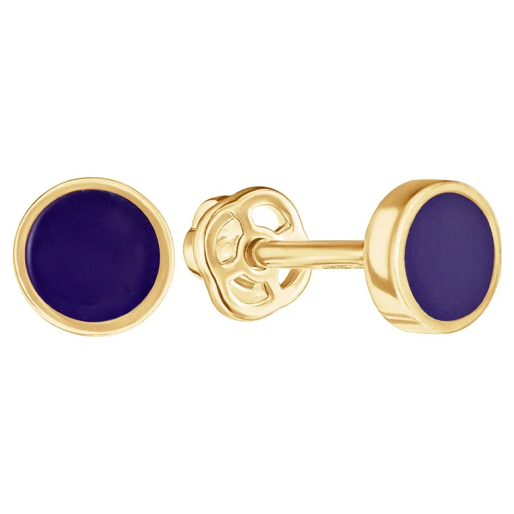 Серебряные серьги гвоздики (пусеты) с эмалью - цвет фиолетовый / Желтое Золото. Средний вес ювелирного украшения 0.86 гр. Эмаль – холодная двухкомпонентная итальянская эмаль высокого качества. Имеет высокую степень устойчивости к царапинам и солнечному свету, ударам и механическим повреждениям.< /p> Все изделия собственного производства и имеют гарантию 12 месяцев. Арт. 8612YG.