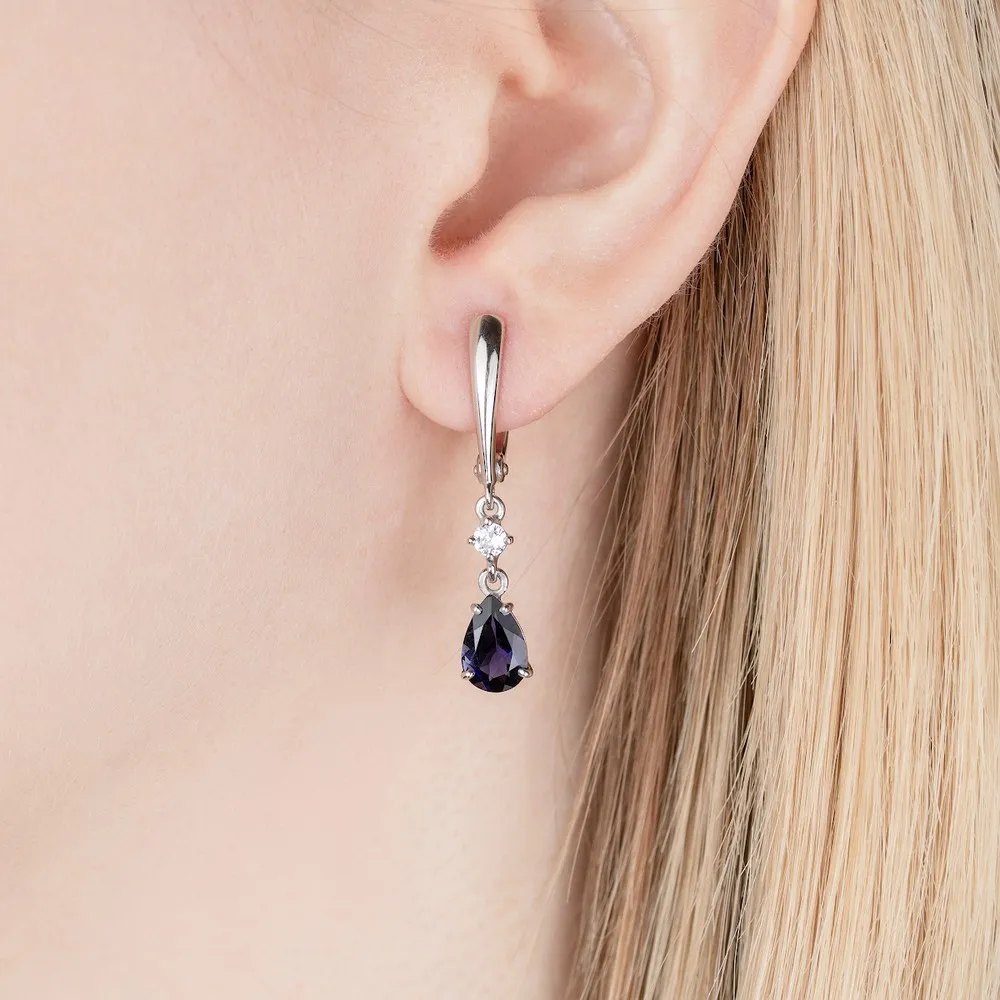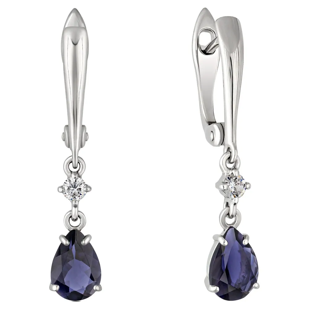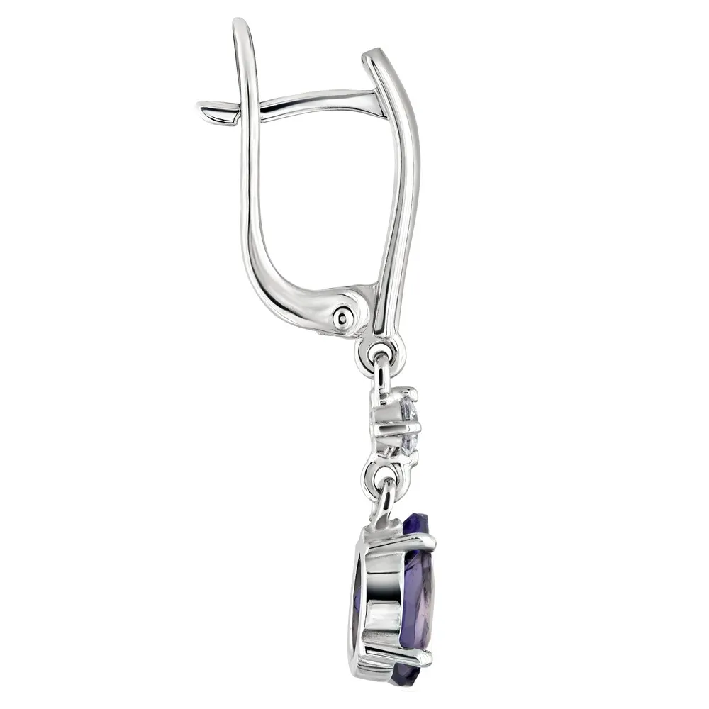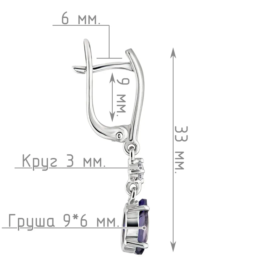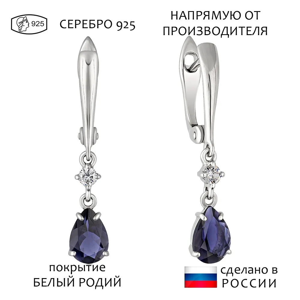 Серебряные серьги с натуральным иолитом (2 класс) - коллекция Алсу (большая) / Белый Родий.