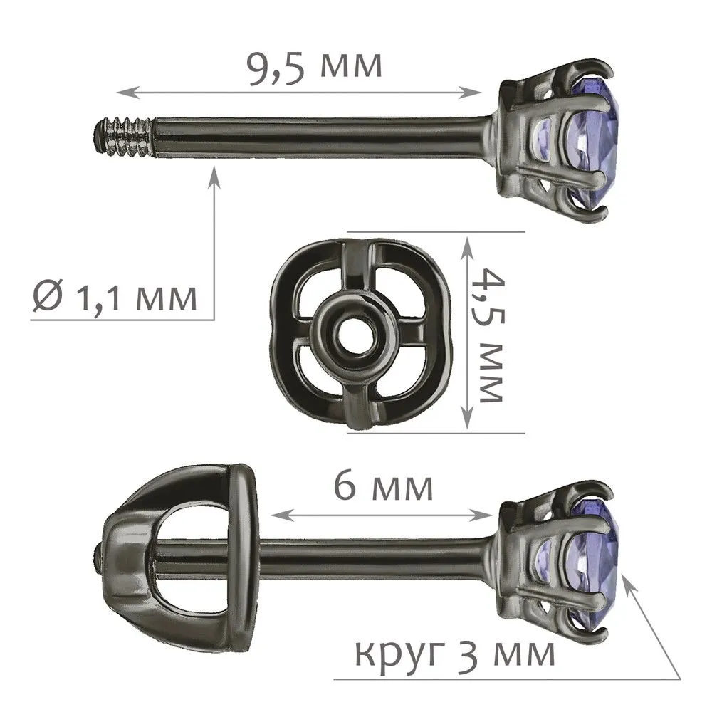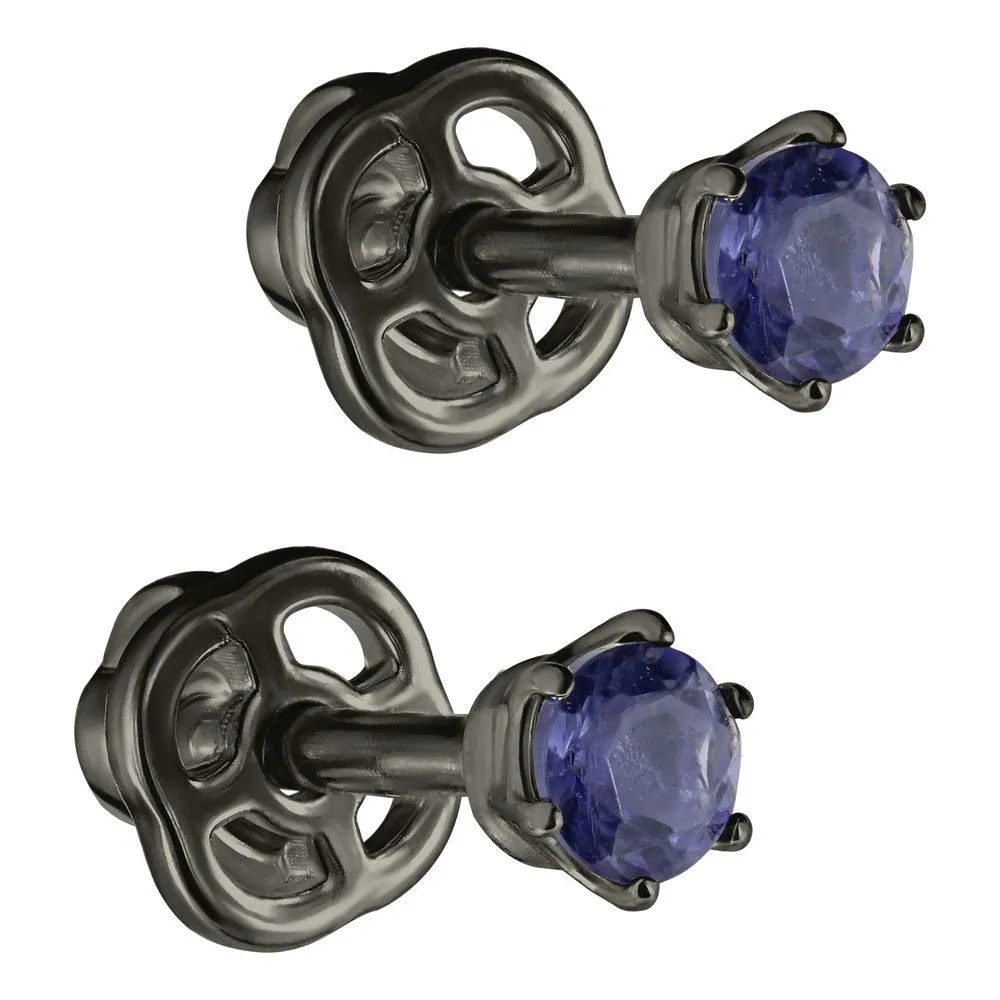Серебряные серьги гвоздики (пусеты) с натуральным иолитом, покрытие Черный Родий. Средний вес украшения с камнями 0.6 гр. Месторождение: Иолит (Бирма). Иолит (Натуральный) круг 3 мм., средний вес: 0.1 карат. Все изделия собственного производства и имеют гарантию 12 месяцев, к каждому изделию прилагается паспорт. Арт. 8321BR. Иолит – это камень, который называют разными именами: водяной сапфир, синий нефрит, рысий сапфир. Полудрагоценный камень очаровывал переливчатыми оттенками синего и фиолетового. Ещё викинги считали, что он помогает найти путь. Полезен он и для здоровья, например, при мигренях. А главное, дает своему хозяину толчок к самореализации.