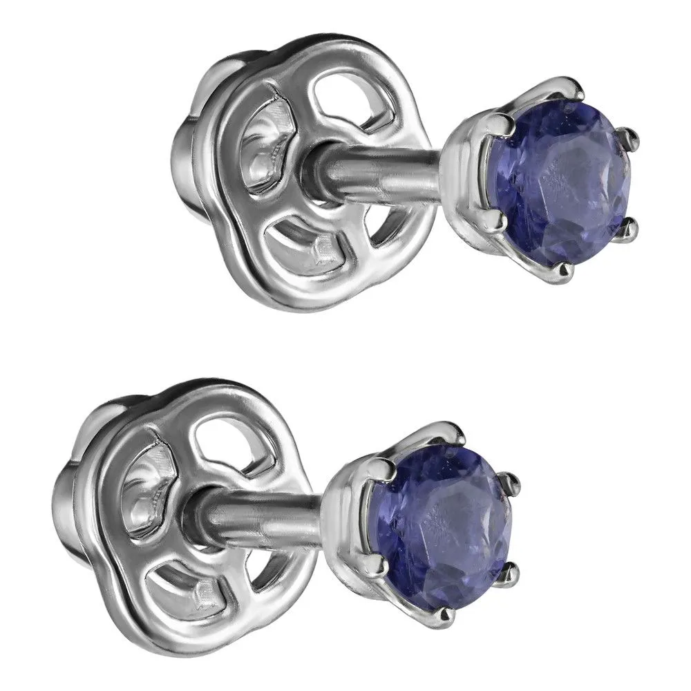 Серебряные серьги гвоздики (пусеты) с натуральным иолитом, покрытие Палладий. Средний вес украшения с камнями 0.6 гр. Месторождение: Иолит (Бирма). Иолит (Натуральный) круг 3 мм., средний вес: 0.1 карат. Все изделия собственного производства и имеют гарантию 12 месяцев, к каждому изделию прилагается паспорт. Арт. 8321PD. Иолит – это камень, который называют разными именами: водяной сапфир, синий нефрит, рысий сапфир. Полудрагоценный камень очаровывал переливчатыми оттенками синего и фиолетового. Ещё викинги считали, что он помогает найти путь. Полезен он и для здоровья, например, при мигренях. А главное, дает своему хозяину толчок к самореализации.