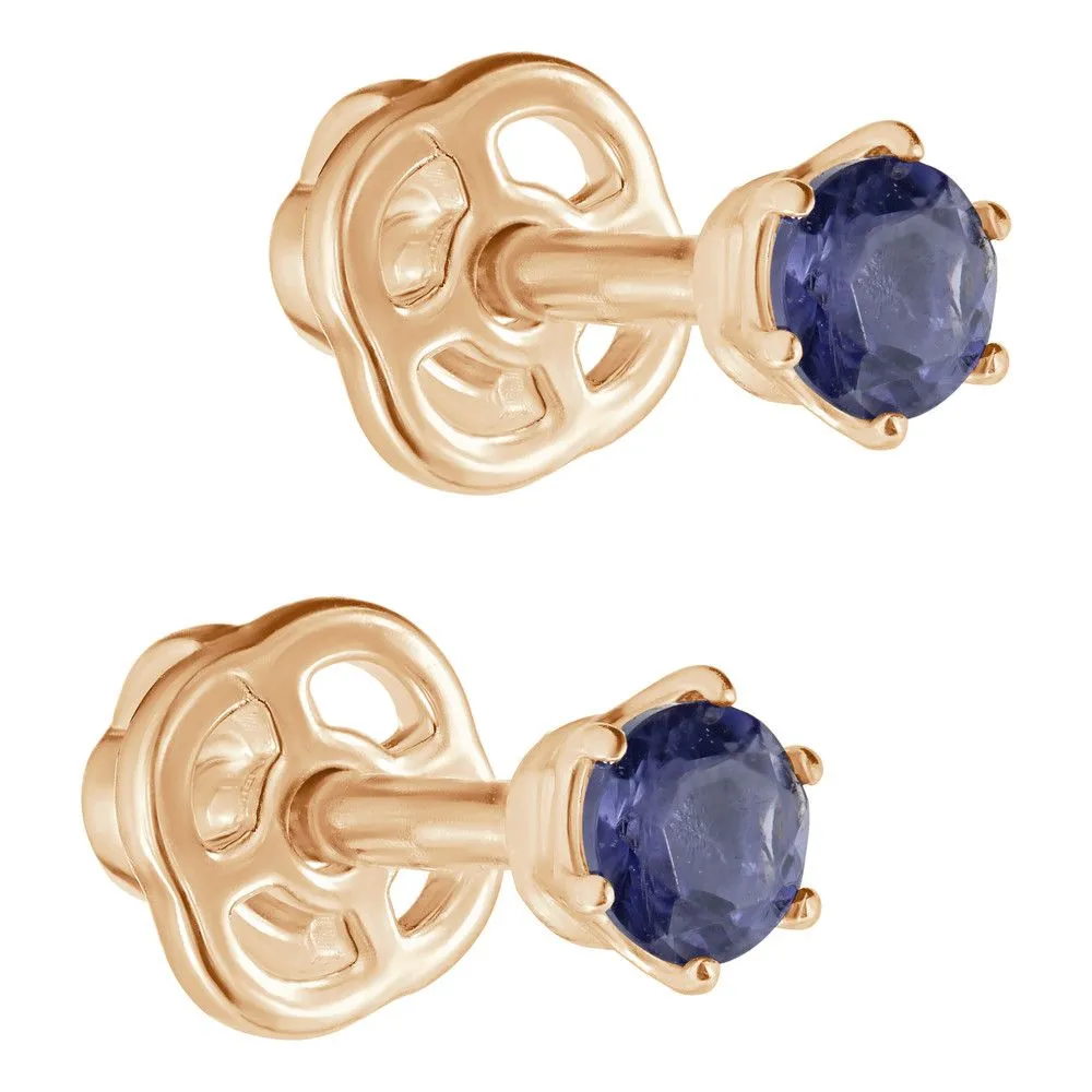 Серебряные серьги гвоздики (пусеты) с натуральным иолитом, покрытие Розовое Золото. Средний вес украшения с камнями 0.6 гр. Месторождение: Иолит (Бирма). Иолит (Натуральный) круг 3 мм., средний вес: 0.1 карат. Все изделия собственного производства и имеют гарантию 12 месяцев, к каждому изделию прилагается паспорт. Арт. 8321PG. Иолит – это камень, который называют разными именами: водяной сапфир, синий нефрит, рысий сапфир. Полудрагоценный камень очаровывал переливчатыми оттенками синего и фиолетового. Ещё викинги считали, что он помогает найти путь. Полезен он и для здоровья, например, при мигренях. А главное, дает своему хозяину толчок к самореализации.