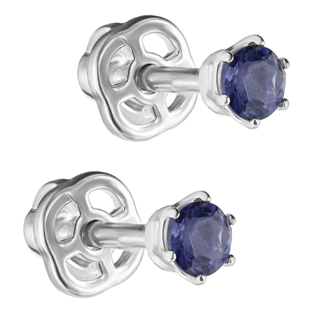 Серебряные серьги гвоздики (пусеты) с натуральным иолитом, покрытие Белый Родий. Средний вес украшения с камнями 0.6 гр. Месторождение: Иолит (Бирма). Иолит (Натуральный) круг 3 мм., средний вес: 0.1 карат. Все изделия собственного производства и имеют гарантию 12 месяцев, к каждому изделию прилагается паспорт. Арт. 8321WR. Иолит – это камень, который называют разными именами: водяной сапфир, синий нефрит, рысий сапфир. Полудрагоценный камень очаровывал переливчатыми оттенками синего и фиолетового. Ещё викинги считали, что он помогает найти путь. Полезен он и для здоровья, например, при мигренях. А главное, дает своему хозяину толчок к самореализации.