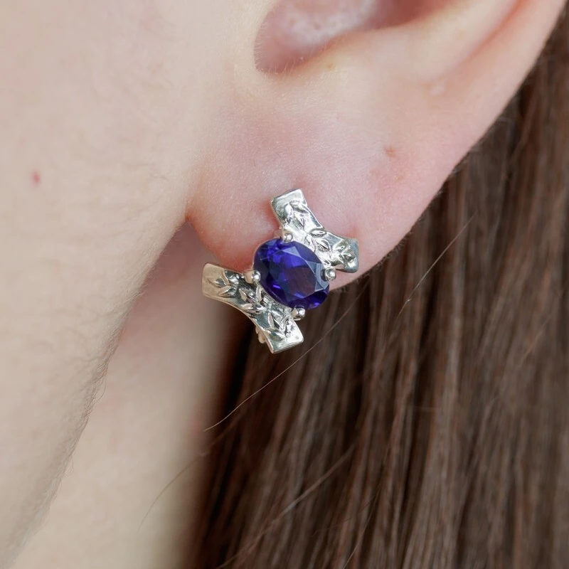 Серебряные серьги с натуральным иолитом - коллекция Тея. Средний вес изделия с камнями 3.59 гр. Месторождение: Иолит (Бирма). Иолит (Натуральный) овал 5*7 мм., средний вес: 0.63 карат. Все изделия собственного производства. Гарантия 12 месяцев.Арт. 8329. Иолит – это камень, который называют разными именами: водяной сапфир, синий нефрит, рысий сапфир. Полудрагоценный камень очаровывал переливчатыми оттенками синего и фиолетового. Ещё викинги считали, что он помогает найти путь. Полезен он и для здоровья, например, при мигренях. А главное, дает своему хозяину толчок к самореализации.