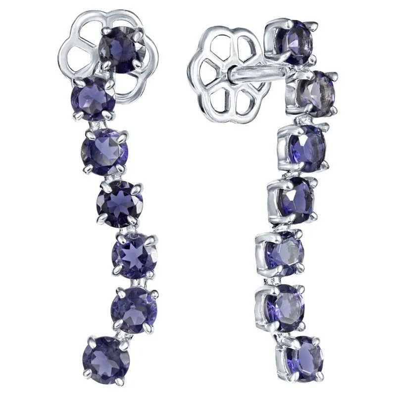 Серебряные серьги с натуральным иолитом - коллекция Волна / покрытие Чистое Серебро.Средний вес украшения с камнями 1.71 гр.Месторождение: Иолит (Бирма)Ювелирные вставки:Иолит (Натуральный) круг 3 мм., средний вес: 0.88 карат.Все изделия собственного производства и имеют гарантию 12 месяцев. Арт. 8737AG . Иолит – это камень, который называют разными именами: водяной сапфир, синий нефрит, рысий сапфир. Полудрагоценный камень очаровывал переливчатыми оттенками синего и фиолетового. Ещё викинги считали, что он помогает найти путь. Полезен он и для здоровья, например, при мигренях. А главное, дает своему хозяину толчок к самореализации.