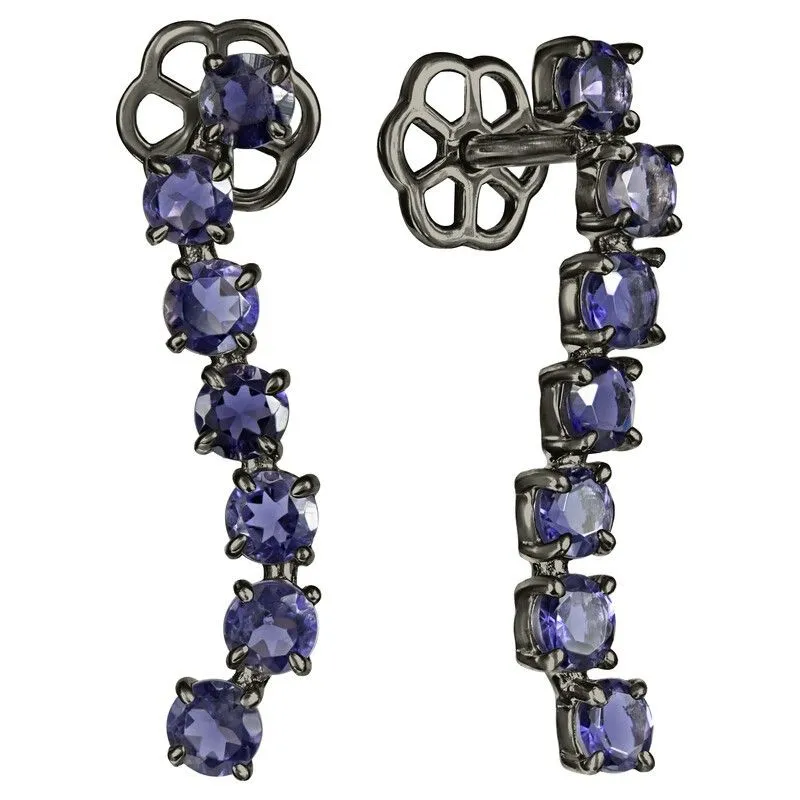 Серебряные серьги с натуральным иолитом - коллекция Волна / покрытие Черный Родий.Средний вес украшения с камнями 1.72 гр.Месторождение: Иолит (Бирма)Ювелирные вставки:Иолит (Натуральный) круг 3 мм., средний вес: 0.89 карат.Все изделия собственного производства и имеют гарантию 12 месяцев. Арт. 8737BR . Иолит – это камень, который называют разными именами: водяной сапфир, синий нефрит, рысий сапфир. Полудрагоценный камень очаровывал переливчатыми оттенками синего и фиолетового. Ещё викинги считали, что он помогает найти путь. Полезен он и для здоровья, например, при мигренях. А главное, дает своему хозяину толчок к самореализации.