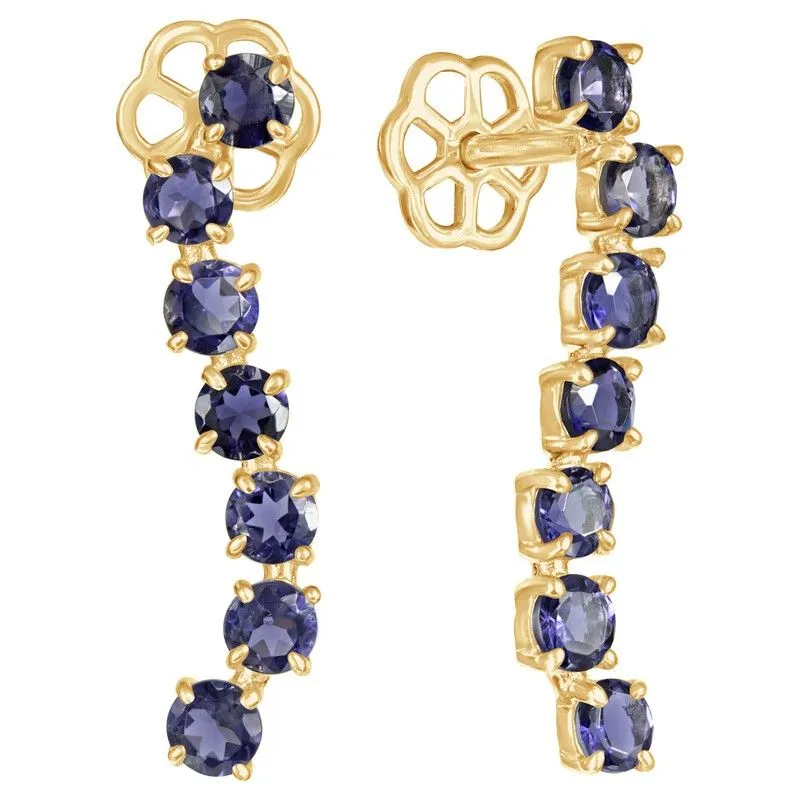 Серебряные серьги с натуральным иолитом - коллекция Волна / покрытие Желтое Золото.Средний вес украшения с камнями 1.8 гр.Месторождение: Иолит (Бирма)Ювелирные вставки:Иолит (Натуральный) круг 3 мм., средний вес: 0.76 карат.Все изделия собственного производства и имеют гарантию 12 месяцев. Арт. 8737YG . Иолит – это камень, который называют разными именами: водяной сапфир, синий нефрит, рысий сапфир. Полудрагоценный камень очаровывал переливчатыми оттенками синего и фиолетового. Ещё викинги считали, что он помогает найти путь. Полезен он и для здоровья, например, при мигренях. А главное, дает своему хозяину толчок к самореализации.