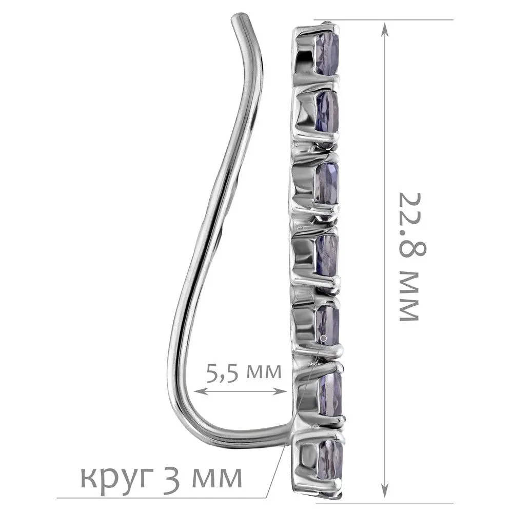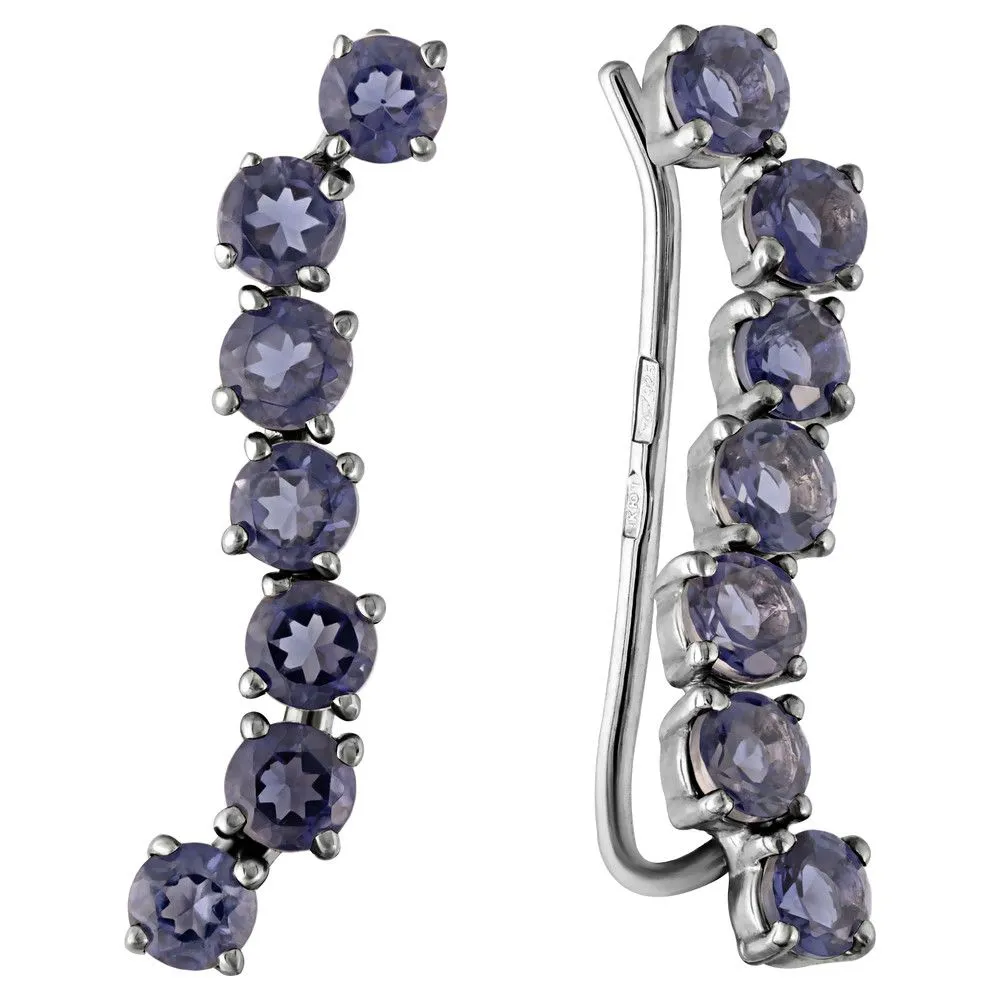 Серебряные серьги каффы с натуральным иолитом - коллекция Волна / покрытие Палладий.Средний вес украшения с камнями 1.73 гр.Месторождение: Иолит (Бирма)Ювелирные вставки:Иолит (Натуральный) круг 3 мм., средний вес: 0.59 карат.Все изделия собственного производства и имеют гарантию 12 месяцев. Арт. 8749PD . Иолит – это камень, который называют разными именами: водяной сапфир, синий нефрит, рысий сапфир. Полудрагоценный камень очаровывал переливчатыми оттенками синего и фиолетового. Ещё викинги считали, что он помогает найти путь. Полезен он и для здоровья, например, при мигренях. А главное, дает своему хозяину толчок к самореализации.