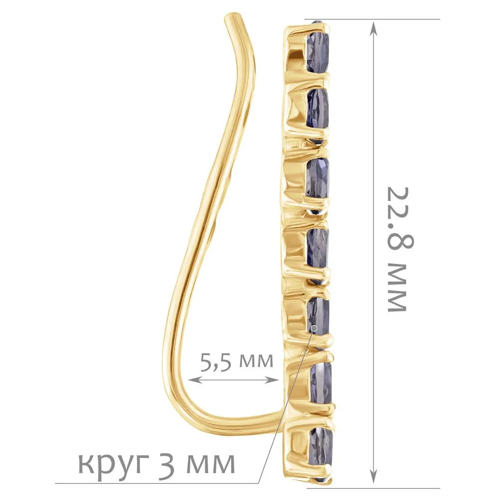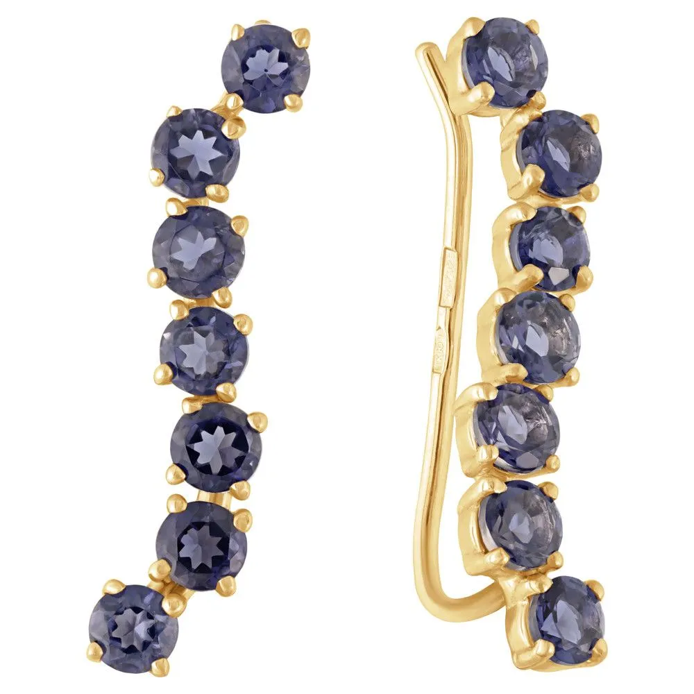 Серебряные серьги каффы с натуральным иолитом - коллекция Волна / покрытие Желтое Золото.Средний вес украшения с камнями 1.79 гр.Месторождение: Иолит (Бирма)Ювелирные вставки:Иолит (Натуральный) круг 3 мм., средний вес: 0.95 карат.Все изделия собственного производства и имеют гарантию 12 месяцев. Арт. 8749YG . Иолит – это камень, который называют разными именами: водяной сапфир, синий нефрит, рысий сапфир. Полудрагоценный камень очаровывал переливчатыми оттенками синего и фиолетового. Ещё викинги считали, что он помогает найти путь. Полезен он и для здоровья, например, при мигренях. А главное, дает своему хозяину толчок к самореализации.
