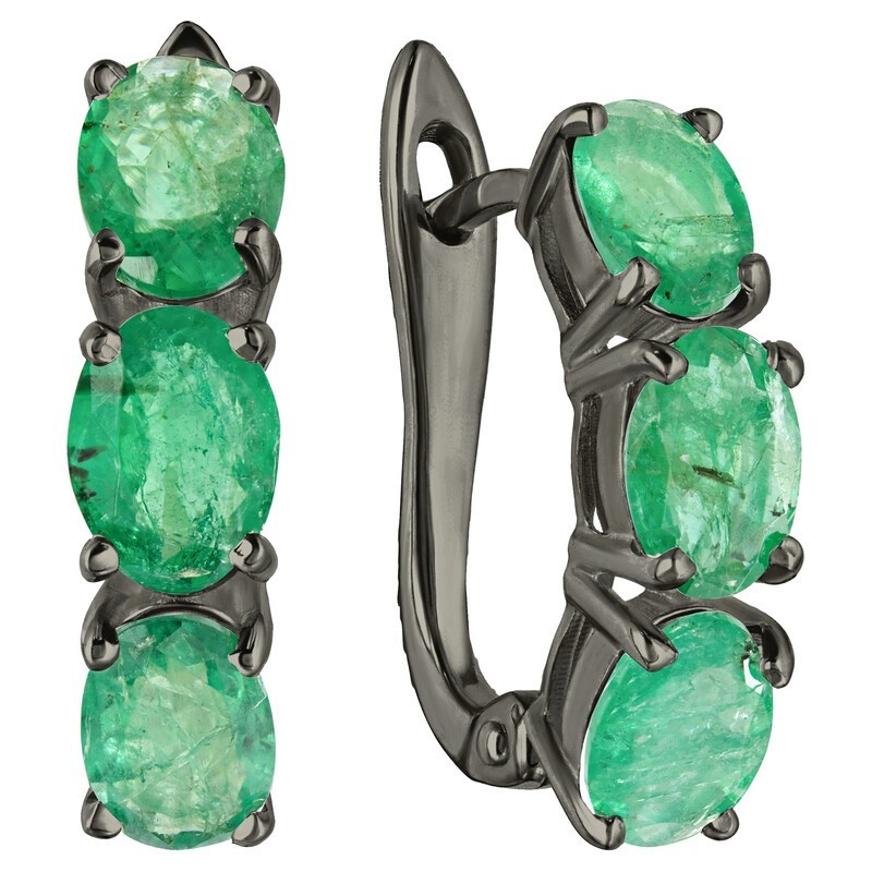 Серебряные серьги с натуральным изумрудом - коллекция Муза, покрытие Черный Родий.