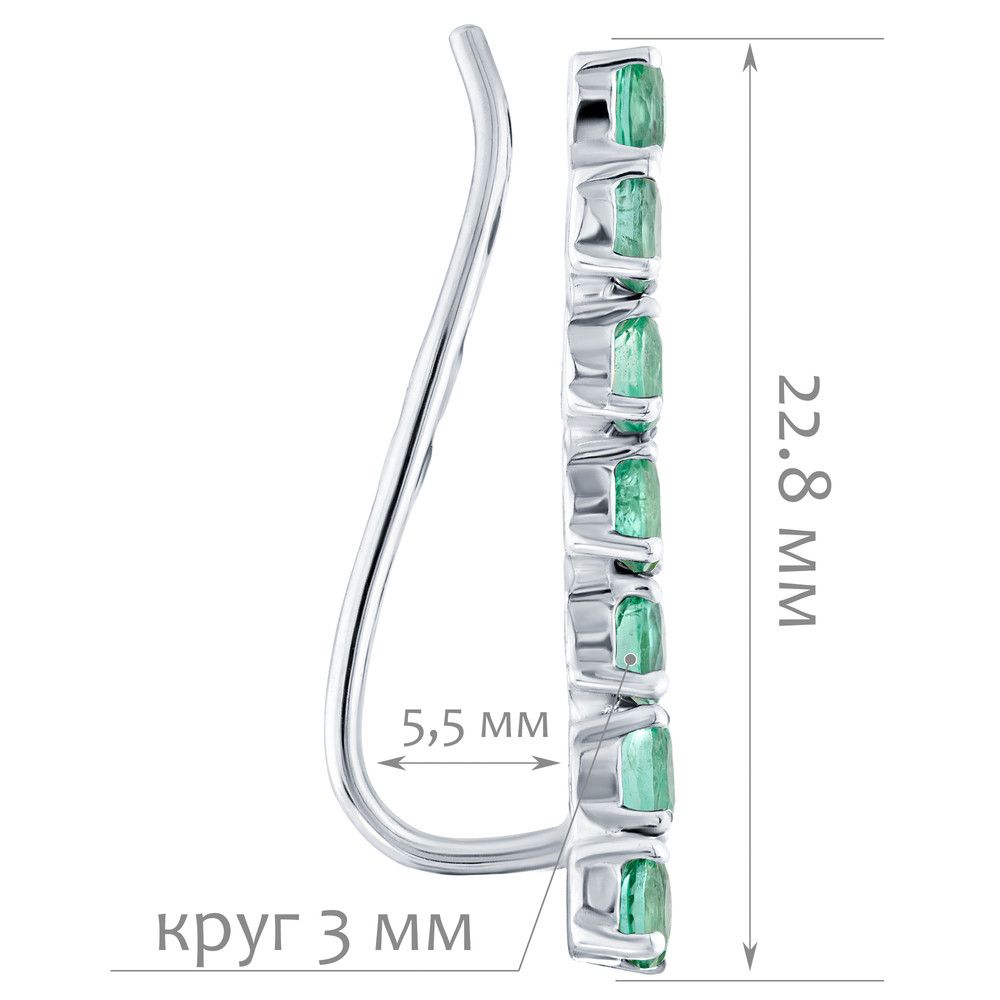 Серебряные серьги каффы с натуральным изумрудом - коллекция Волна / покрытие Чистое Серебро.Средний вес украшения с камнями 1.84 гр.Месторождение: Изумруд (Замбия, Восточная Африка)Ювелирные вставки:Изумруд (Натуральный) круг 3 мм., средний вес: 0.72 карат.Все изделия собственного производства и имеют гарантию 12 месяцев, к каждому изделию прилагается паспорт. Арт. 8756AG . Изумруд — драгоценный камень, символ богини Изиды. Греки считали его камнем сияния, во многих культурах он становился символом надежды и мудрости. Не лишен и лечебных качеств, имеет антибактериальные свойства и способен очищать воду.