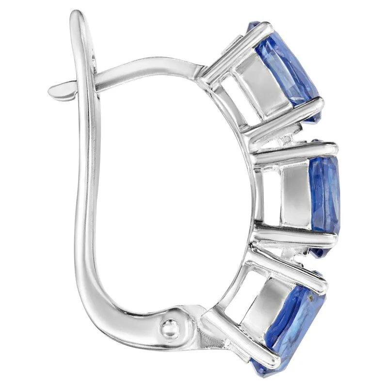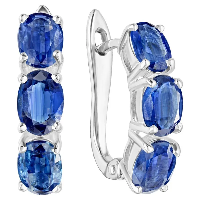 Серебряные серьги с натуральным кианитом - коллекция Муза. Средний вес украшения с камнями 4.25 гр. Месторождение: Кианит (Непал). Кианит (Натуральный) овал 5*7 мм., средний вес: 1.04 карат. Все изделия собственного производства и имеют гарантию 12 месяцев. Арт. 8517. Кианит — синий камень, однако в зависимости от содержания примесей металлов может быть и других оттенков. Он достаточно редкий и красивый, некоторые кристаллы имеют эффект «кошачьего глаза». Считается, что камень способствует улучшению общего состояния человека, позволяет сохранить верность и наделяет владельца скромностью.