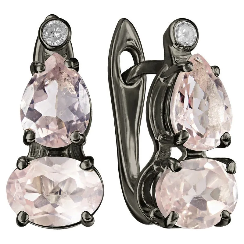 Серебряные серьги с натуральным розовым кварцем - коллекция Сансара / покрытие Черный Родий.Средний вес украшения с камнями 3.27 гр.Месторождение(я): Розовый кварц (Приполярный Урал, Россия).Ювелирные вставки:Розовый кварц (Натуральный) овал 5*7 мм., средний вес: 0.9 карат.Розовый кварц (Натуральный) груша 5*7 мм., средний вес: 0.76 карат.Белый Нанокристалл круг 2 мм., средний вес: 0.06 карат.Все изделия собственного производства и имеют гарантию 12 месяцев. Арт. 8699BR . Розовый кварц – камень сердца. Такое название он получил за способность приносить умиротворение и любовь. Он дарит сочувствие и глубокое понимание гармонии мира. Не обделён он и лечебными свойствами. Это талисман для привлечения в жизнь глубоких чувств и обретения семейного счастья.