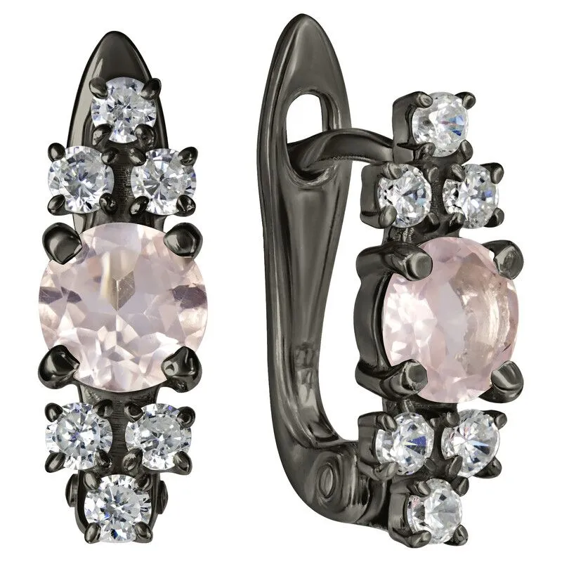 Серебряные серьги с натуральным розовым кварцем - коллекция Нова / покрытие Черный Родий.Средний вес украшения с камнями 2.48 гр.Месторождение(я): Розовый кварц (Приполярный Урал, Россия).Ювелирные вставки:Розовый кварц (Натуральный) круг 5 мм., средний вес: 0.53 карат.Белый Нанокристалл круг 2 мм., средний вес: 0.06 карат.Все изделия собственного производства и имеют гарантию 12 месяцев. Арт. 8713BR . Розовый кварц – камень сердца. Такое название он получил за способность приносить умиротворение и любовь. Он дарит сочувствие и глубокое понимание гармонии мира. Не обделён он и лечебными свойствами. Это талисман для привлечения в жизнь глубоких чувств и обретения семейного счастья.