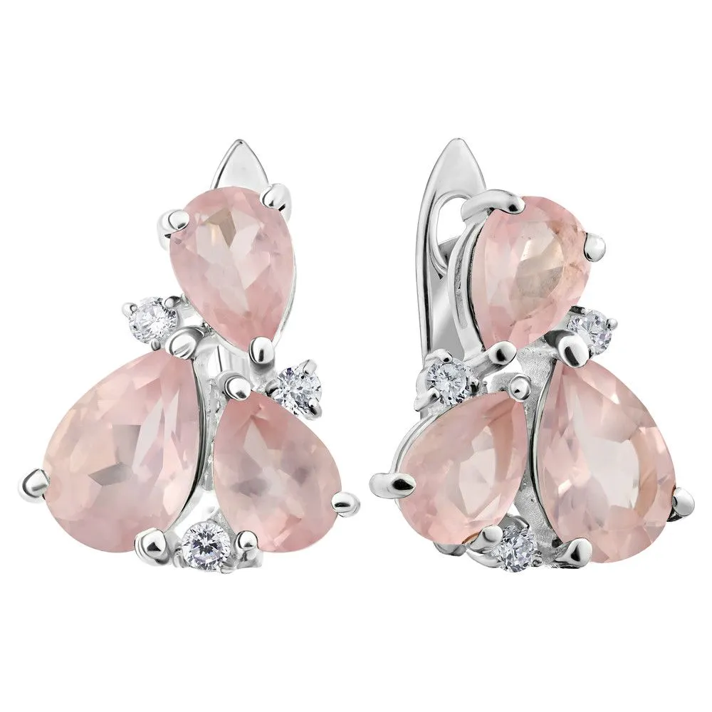 Серебряные серьги с натуральным розовым кварцем - коллекция Капель / покрытие Чистое Серебро. Средний вес украшения с камнями 5.76 гр. Месторождение: Розовый кварц (Приполярный Урал, Россия) Ювелирные вставки: Розовый кварц (Натуральный) груша 6*9 мм., средний вес: 1.16 карат. Розовый кварц (Натуральный) груша 5*7 мм., средний вес: 0.76 карат. Все изделия собственного производства и имеют гарантию 12 месяцев. Арт. 8765AG . Розовый кварц – камень сердца. Такое название он получил за способность приносить умиротворение и любовь. Он дарит сочувствие и глубокое понимание гармонии мира. Не обделён он и лечебными свойствами. Это талисман для привлечения в жизнь глубоких чувств и обретения семейного счастья.