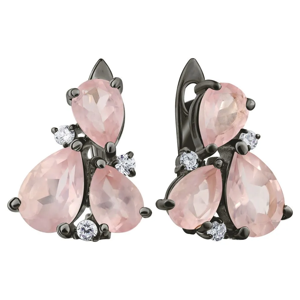 Серебряные серьги с натуральным розовым кварцем - коллекция Капель / покрытие Черный Родий. Средний вес украшения с камнями 5.74 гр. Месторождение: Розовый кварц (Приполярный Урал, Россия) Ювелирные вставки: Розовый кварц (Натуральный) груша 6*9 мм., средний вес: 1.16 карат. Розовый кварц (Натуральный) груша 5*7 мм., средний вес: 0.76 карат. Все изделия собственного производства и имеют гарантию 12 месяцев. Арт. 8765BR . Розовый кварц – камень сердца. Такое название он получил за способность приносить умиротворение и любовь. Он дарит сочувствие и глубокое понимание гармонии мира. Не обделён он и лечебными свойствами. Это талисман для привлечения в жизнь глубоких чувств и обретения семейного счастья.