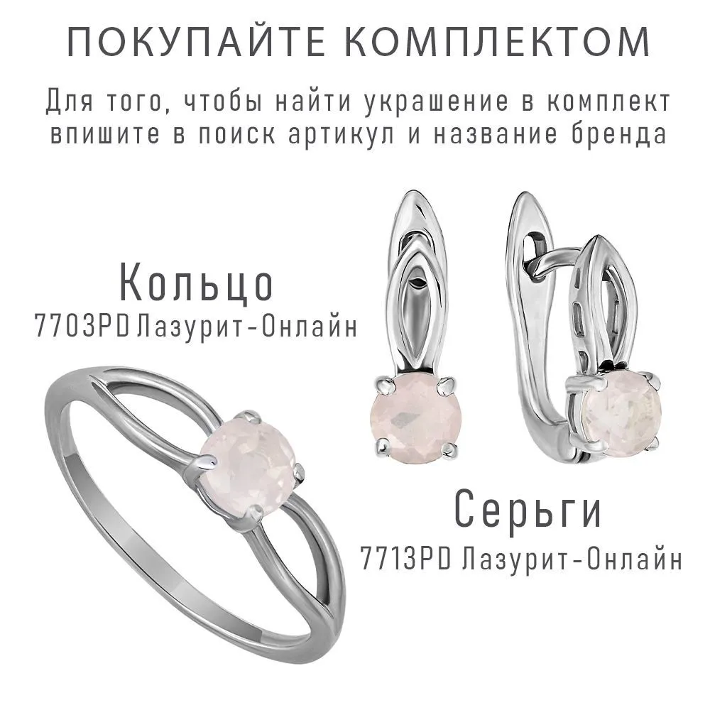 Серебряные серьги с натуральным розовым кварцем - коллекция Мона / покрытие Палладий