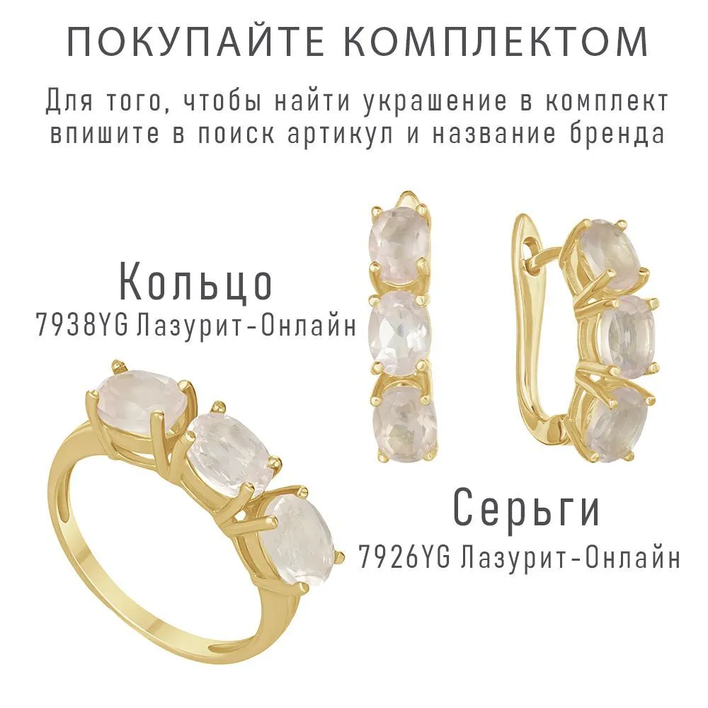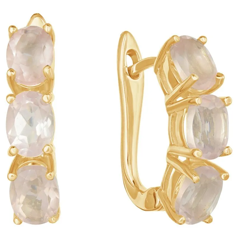 Серебряные серьги с натуральным розовым кварцем - коллекция Муза. Серебряные серьги 925 пробы с покрытием желтое золото. Цвет покрытия соответствует швейцарскому цветовому стандарту NIHS -FF24ct и цвету чистого золото 999.99. На последней фотографии мы разместили сравнительную фотографию 3 цвета золотого покрытия. Помимо предания золотого цвета Вашему изделию, тонкий слой золота защищает от окисления. Для более стойкого эффекта золочения и долговечности покрытия мы дополнительно наносим подслой палладия (Pd). Средний вес изделия с камнями 2.54 гр. Месторождение(я): Розовый кварц (Приполярный Урал, Россия) Розовый кварц (Натуральный) овал 5*7 мм., средний вес: 0,90 карат. Размер лицевой части: 5*21 мм. Все изделия собственного производства. Гарантия 12 месяцев.Арт. 7926. Розовый кварц – камень сердца. Такое название он получил за способность приносить умиротворение и любовь. Он дарит сочувствие и глубокое понимание гармонии мира. Не обделён он и лечебными свойствами. Это талисман для привлечения в жизнь глубоких чувств и обретения семейного счастья.