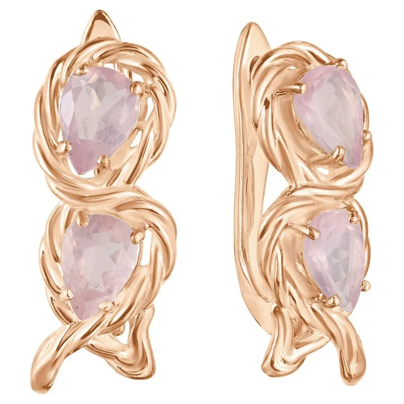 Серебряные серьги с натуральным розовым кварцем - коллекция Ривьера. Серебряные серьги 925 пробы с покрытием красное золото. Цвет покрытия соответствует швейцарскому цветовому стандарту NIHS -5N и цвету красного золота 585 в России. На последней фотографии мы разместили сравнительную фотографию 3 цвета золотого покрытия. Помимо предания золотого цвета Вашему изделию, тонкий слой золота защищает от окисления. Для более стойкого эффекта золочения и долговечности покрытия мы дополнительно наносим подслой палладия (Pd). Средний вес изделия с камнями 4.6 гр. Месторождение: Розовый кварц (Приполярный Урал, Россия) Розовый кварц (Натуральный) груша 5*7 мм., средний вес: 0.76 карат. Все изделия собственного производства. Гарантия 12 месяцев.Арт. 8154. Розовый кварц – камень сердца. Такое название он получил за способность приносить умиротворение и любовь. Он дарит сочувствие и глубокое понимание гармонии мира. Не обделён он и лечебными свойствами. Это талисман для привлечения в жизнь глубоких чувств и обретения семейного счастья.