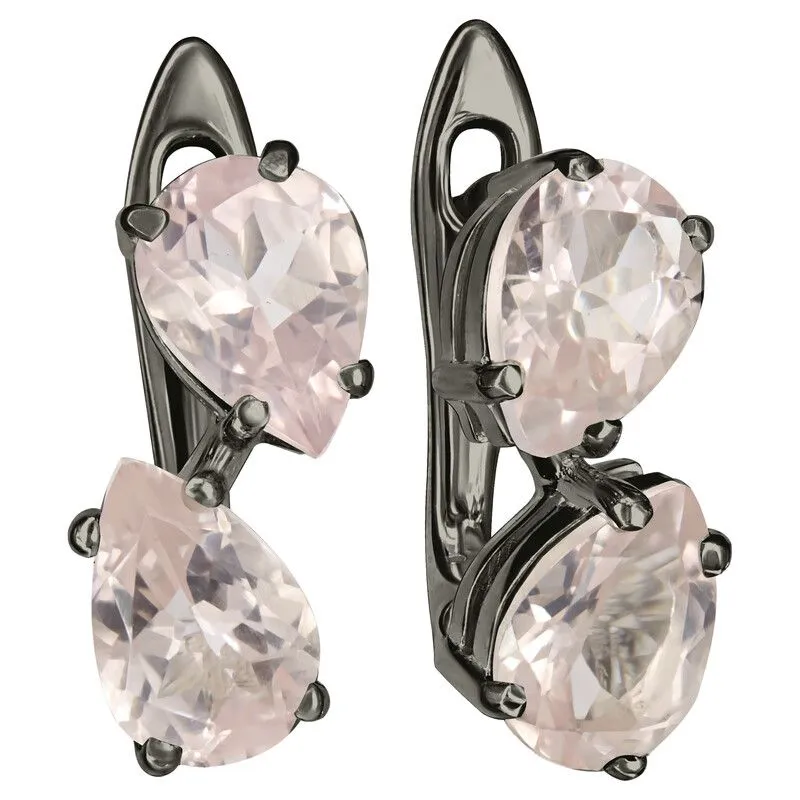 Серебряные серьги с натуральным розовым кварцем - коллекция Дуэт / покрытие Черный Родий.Средний вес украшения с камнями 2.82 гр.Месторождение(я): Розовый кварц (Приполярный Урал, Россия).Ювелирные вставки:Розовый кварц (Натуральный) груша 5*7 мм., средний вес: 0.76 карат.Все изделия собственного производства и имеют гарантию 12 месяцев. Арт. 8685BR . Розовый кварц – камень сердца. Такое название он получил за способность приносить умиротворение и любовь. Он дарит сочувствие и глубокое понимание гармонии мира. Не обделён он и лечебными свойствами. Это талисман для привлечения в жизнь глубоких чувств и обретения семейного счастья.