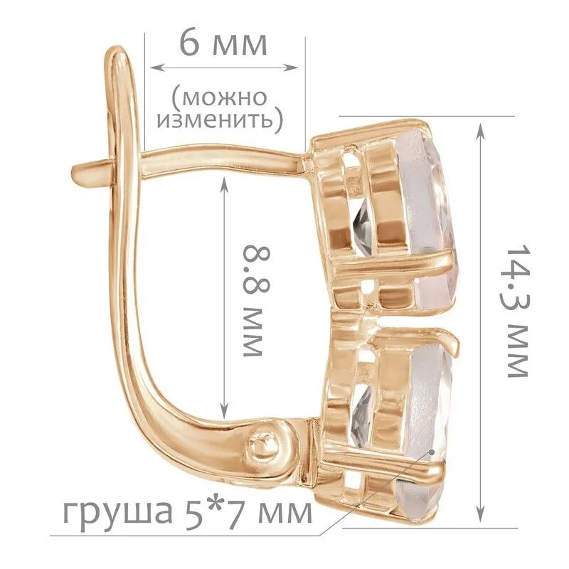 Серебряные серьги с натуральным розовым кварцем - коллекция Дуэт / покрытие Розовое Золото.Средний вес украшения с камнями 2.99 гр.Месторождение(я): Розовый кварц (Приполярный Урал, Россия).Ювелирные вставки:Розовый кварц (Натуральный) груша 5*7 мм., средний вес: 0.76 карат.Все изделия собственного производства и имеют гарантию 12 месяцев. Арт. 8685PG . Розовый кварц – камень сердца. Такое название он получил за способность приносить умиротворение и любовь. Он дарит сочувствие и глубокое понимание гармонии мира. Не обделён он и лечебными свойствами. Это талисман для привлечения в жизнь глубоких чувств и обретения семейного счастья.