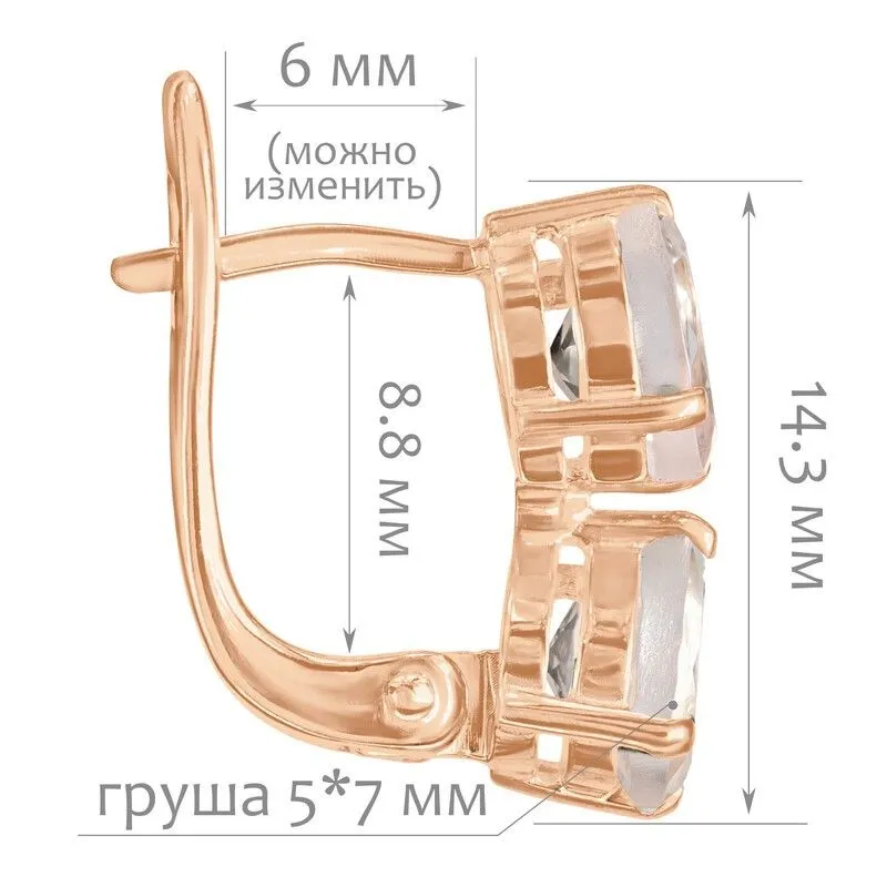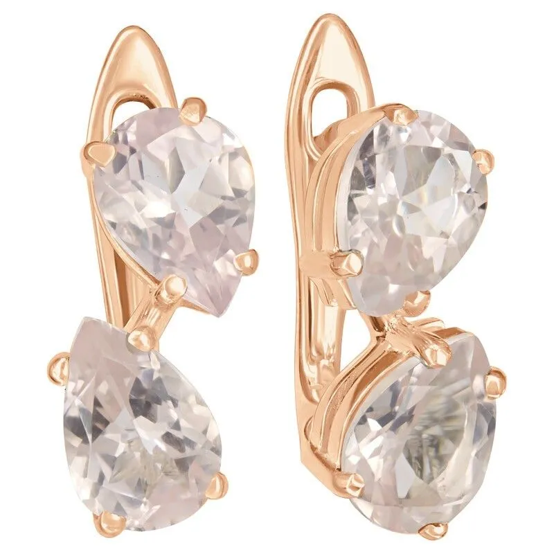 Серебряные серьги с натуральным розовым кварцем - коллекция Дуэт / покрытие Красное Золото.Средний вес украшения с камнями 2.94 гр.Месторождение(я): Розовый кварц (Приполярный Урал, Россия).Ювелирные вставки:Розовый кварц (Натуральный) груша 5*7 мм., средний вес: 0.76 карат.Все изделия собственного производства и имеют гарантию 12 месяцев. Арт. 8685RG . Розовый кварц – камень сердца. Такое название он получил за способность приносить умиротворение и любовь. Он дарит сочувствие и глубокое понимание гармонии мира. Не обделён он и лечебными свойствами. Это талисман для привлечения в жизнь глубоких чувств и обретения семейного счастья.