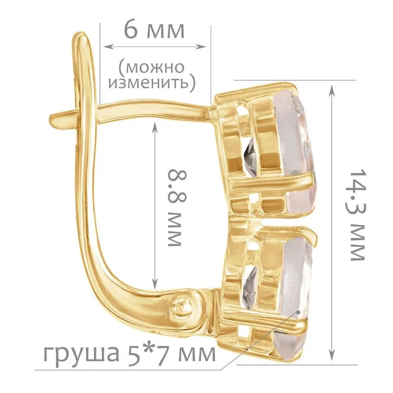Серебряные серьги с натуральным розовым кварцем - коллекция Дуэт / покрытие Желтое Золото.Средний вес украшения с камнями 2.84 гр.Месторождение(я): Розовый кварц (Приполярный Урал, Россия).Ювелирные вставки:Розовый кварц (Натуральный) груша 5*7 мм., средний вес: 0.76 карат.Все изделия собственного производства и имеют гарантию 12 месяцев. Арт. 8685YG . Розовый кварц – камень сердца. Такое название он получил за способность приносить умиротворение и любовь. Он дарит сочувствие и глубокое понимание гармонии мира. Не обделён он и лечебными свойствами. Это талисман для привлечения в жизнь глубоких чувств и обретения семейного счастья.