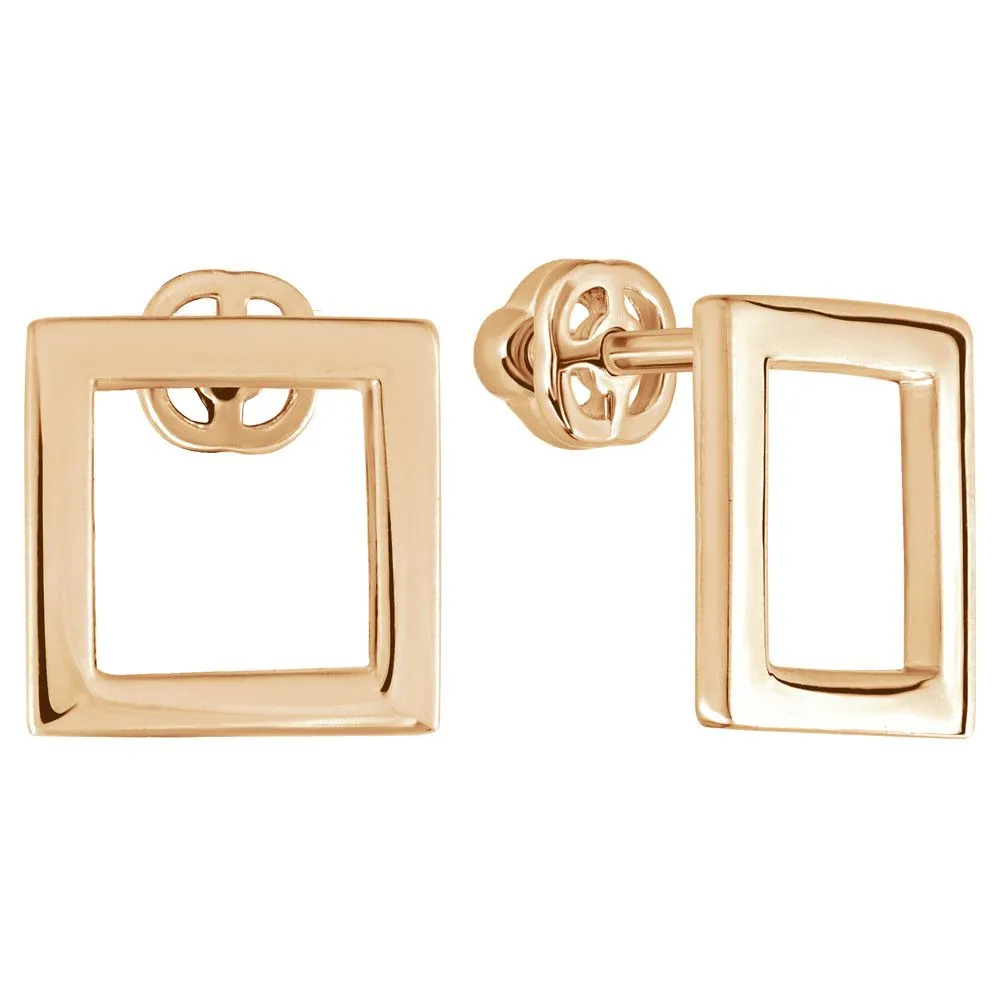 Серебряные серьги гвоздики (пусеты) - Квадрат / Розовое Золото. Средний вес ювелирного украшения 1.66 гр. Все изделия собственного производства и имеют гарантию 12 месяцев. Арт. 8852PG.