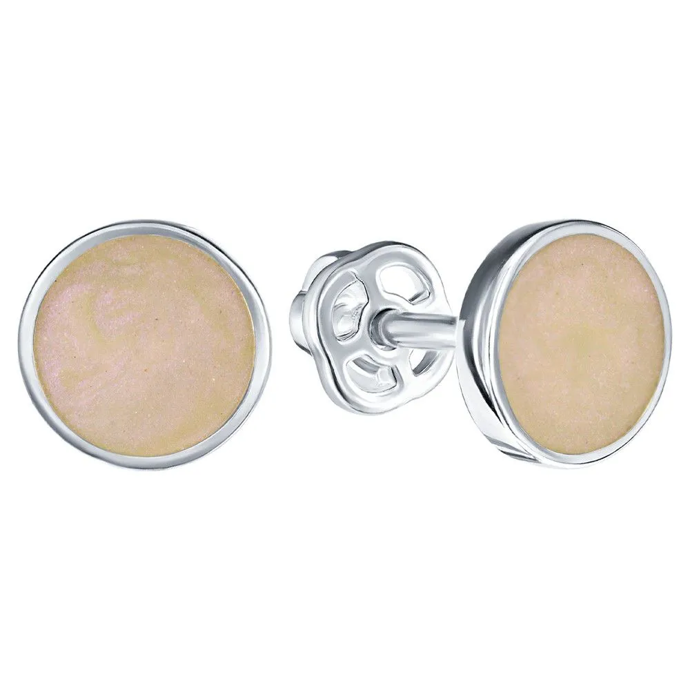 Серебряные серьги гвоздики (пусеты) с эмалью - цвет розовый перламутр / Чистое Серебро. Средний вес ювелирного украшения 1.27 гр. Эмаль – холодная двухкомпонентная итальянская эмаль высокого качества. Имеет высокую степень устойчивости к царапинам и солнечному свету, ударам и механическим повреждениям.< /p> Все изделия собственного производства и имеют гарантию 12 месяцев. Арт. 8591AG.