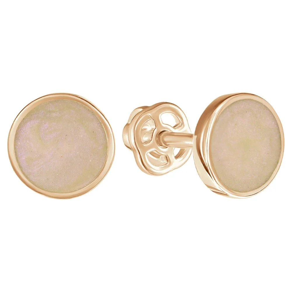 Серебряные серьги гвоздики (пусеты) с эмалью - цвет розовый перламутр / Розовое Золото. Средний вес ювелирного украшения 1.27 гр. Эмаль – холодная двухкомпонентная итальянская эмаль высокого качества. Имеет высокую степень устойчивости к царапинам и солнечному свету, ударам и механическим повреждениям.< /p> Все изделия собственного производства и имеют гарантию 12 месяцев. Арт. 8591PG.