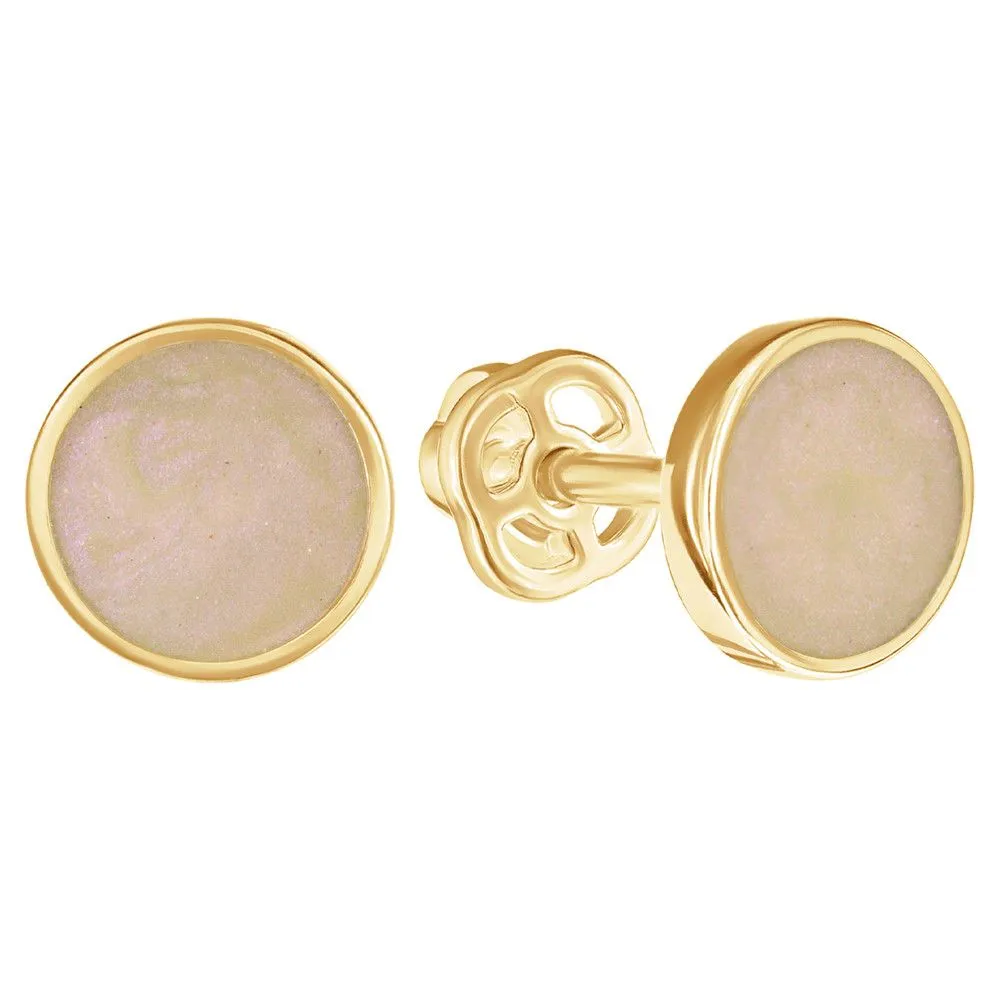 Серебряные серьги гвоздики (пусеты) с эмалью - цвет розовый перламутр / Желтое Золото. Средний вес ювелирного украшения 1.27 гр. Эмаль – холодная двухкомпонентная итальянская эмаль высокого качества. Имеет высокую степень устойчивости к царапинам и солнечному свету, ударам и механическим повреждениям.< /p> Все изделия собственного производства и имеют гарантию 12 месяцев. Арт. 8591YG.