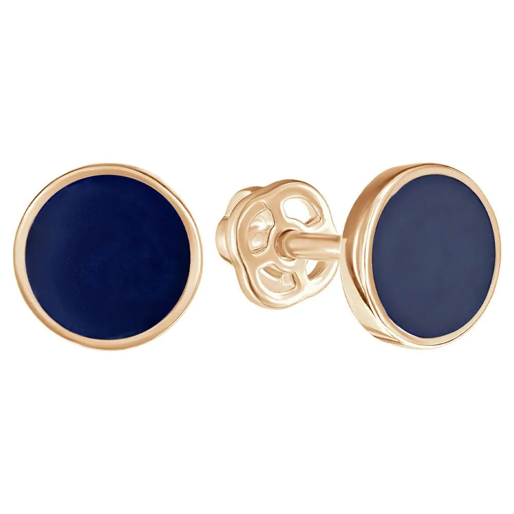 Серебряные серьги гвоздики (пусеты) с эмалью - цвет синий / Розовое Золото. Средний вес ювелирного украшения 1.27 гр. Эмаль – холодная двухкомпонентная итальянская эмаль высокого качества. Имеет высокую степень устойчивости к царапинам и солнечному свету, ударам и механическим повреждениям.< /p> Все изделия собственного производства и имеют гарантию 12 месяцев. Арт. 8599PG.