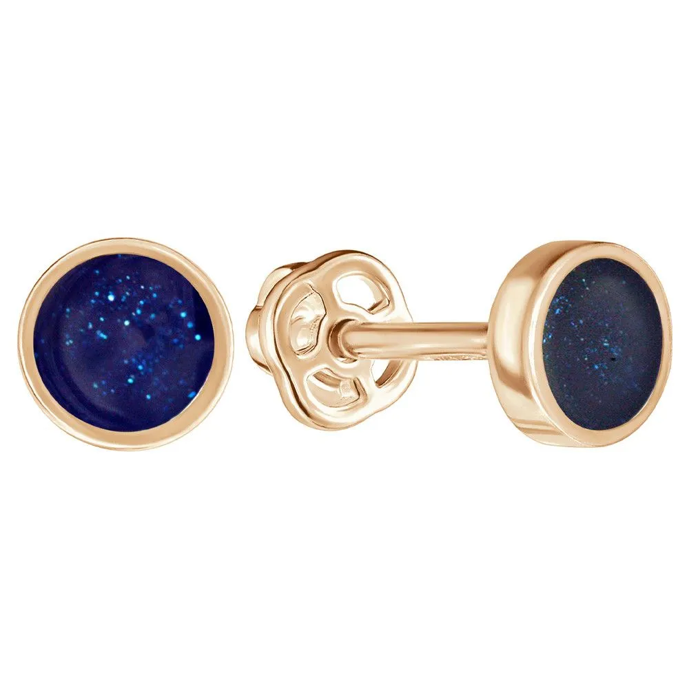 Серебряные серьги гвоздики (пусеты) с эмалью - цвет синий перламутр / Розовое Золото. Средний вес ювелирного украшения 0.86 гр. Эмаль – холодная двухкомпонентная итальянская эмаль высокого качества. Имеет высокую степень устойчивости к царапинам и солнечному свету, ударам и механическим повреждениям.< /p> Все изделия собственного производства и имеют гарантию 12 месяцев. Арт. 8606PG.