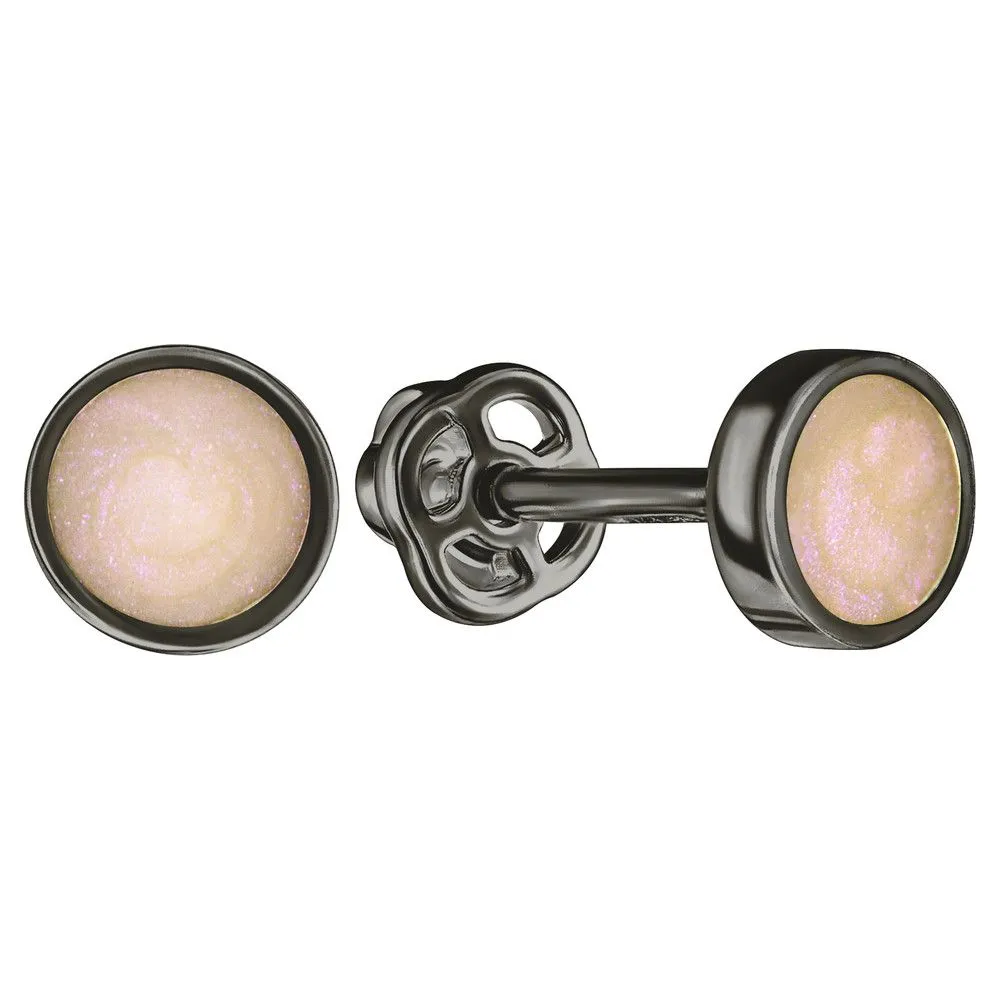 Серебряные серьги гвоздики (пусеты) с эмалью - цвет розовый перламутр / Черный Родий. Средний вес ювелирного украшения 0.86 гр. Эмаль – холодная двухкомпонентная итальянская эмаль высокого качества. Имеет высокую степень устойчивости к царапинам и солнечному свету, ударам и механическим повреждениям.< /p> Все изделия собственного производства и имеют гарантию 12 месяцев. Арт. 8607BR.