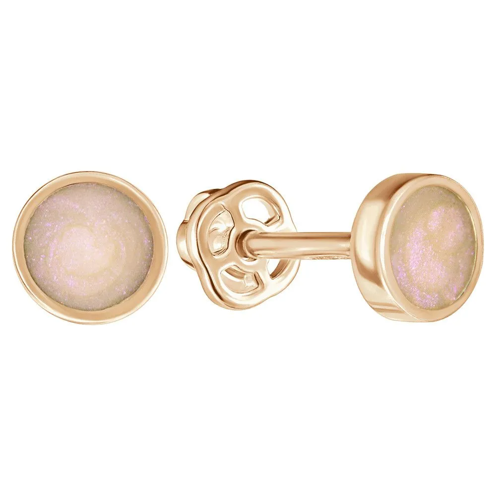 Серебряные серьги гвоздики (пусеты) с эмалью - цвет розовый перламутр / Розовое Золото. Средний вес ювелирного украшения 0.86 гр. Эмаль – холодная двухкомпонентная итальянская эмаль высокого качества. Имеет высокую степень устойчивости к царапинам и солнечному свету, ударам и механическим повреждениям.< /p> Все изделия собственного производства и имеют гарантию 12 месяцев. Арт. 8607PG.
