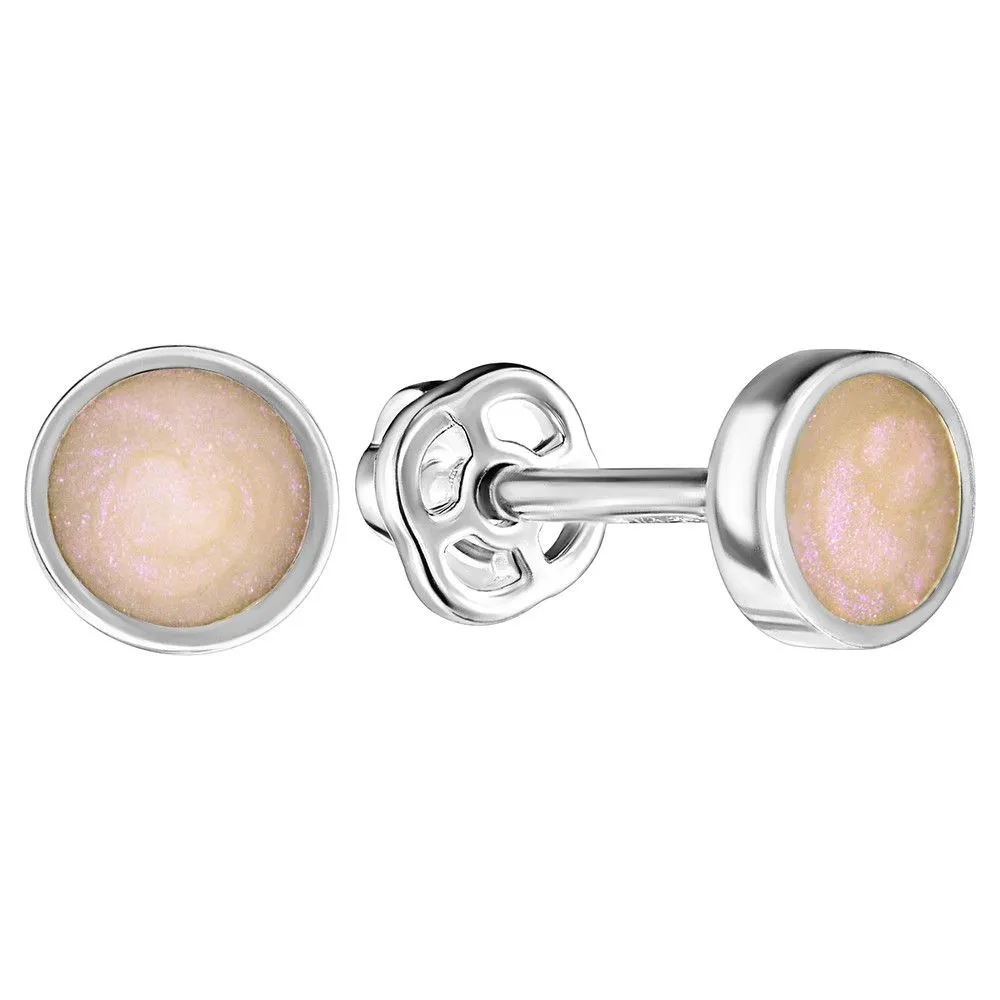 Серебряные серьги гвоздики (пусеты) с эмалью - цвет розовый перламутр / Белый Родий. Средний вес ювелирного украшения 0.86 гр. Эмаль – холодная двухкомпонентная итальянская эмаль высокого качества. Имеет высокую степень устойчивости к царапинам и солнечному свету, ударам и механическим повреждениям.< /p> Все изделия собственного производства и имеют гарантию 12 месяцев. Арт. 8607WR.