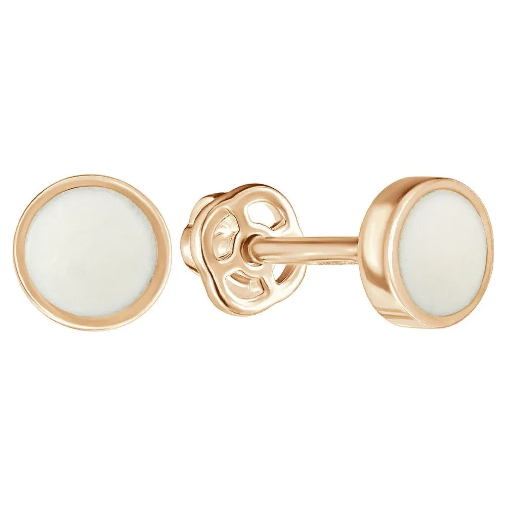 Серебряные серьги гвоздики (пусеты) с эмалью - цвет белый / Розовое Золото. Средний вес ювелирного украшения 0.86 гр. Эмаль – холодная двухкомпонентная итальянская эмаль высокого качества. Имеет высокую степень устойчивости к царапинам и солнечному свету, ударам и механическим повреждениям.< /p> Все изделия собственного производства и имеют гарантию 12 месяцев. Арт. 8609PG.