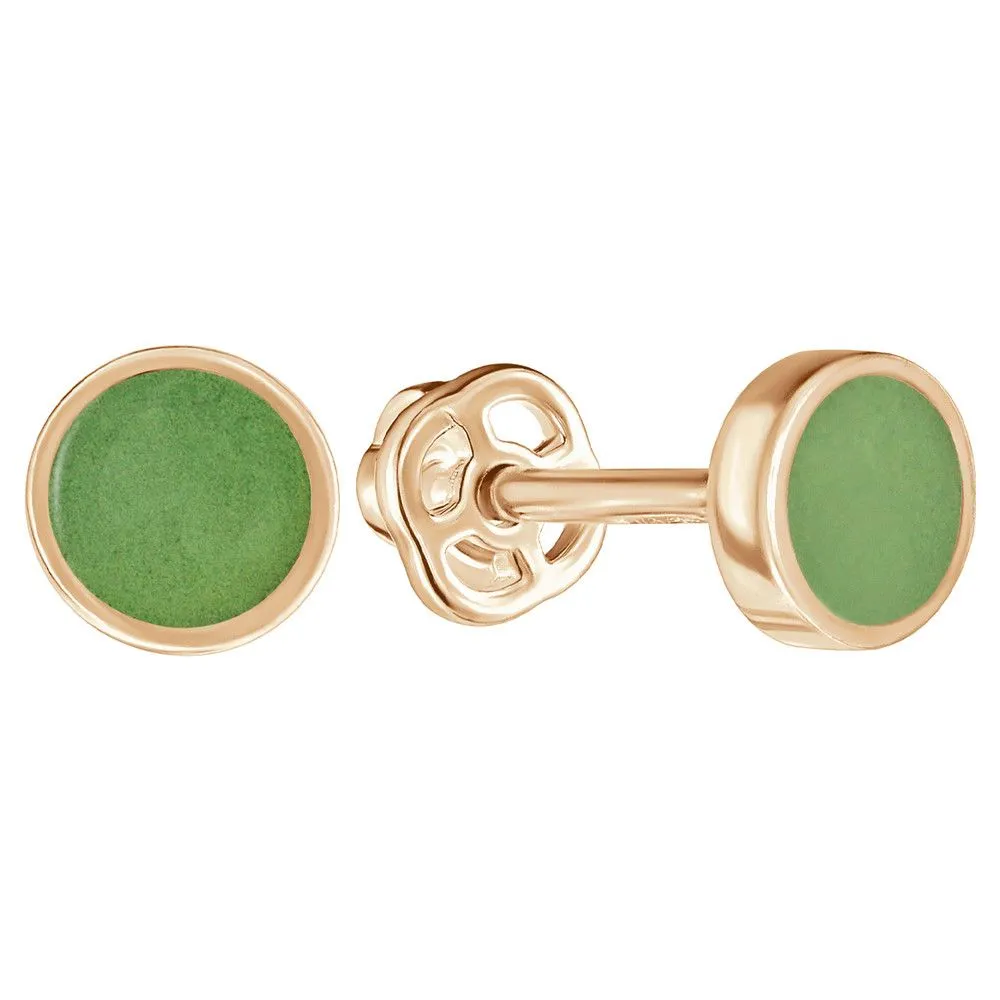Серебряные серьги гвоздики (пусеты) с эмалью - цвет фисташковый / Розовое Золото. Средний вес ювелирного украшения 0.86 гр. Эмаль – холодная двухкомпонентная итальянская эмаль высокого качества. Имеет высокую степень устойчивости к царапинам и солнечному свету, ударам и механическим повреждениям.< /p> Все изделия собственного производства и имеют гарантию 12 месяцев. Арт. 8617PG.