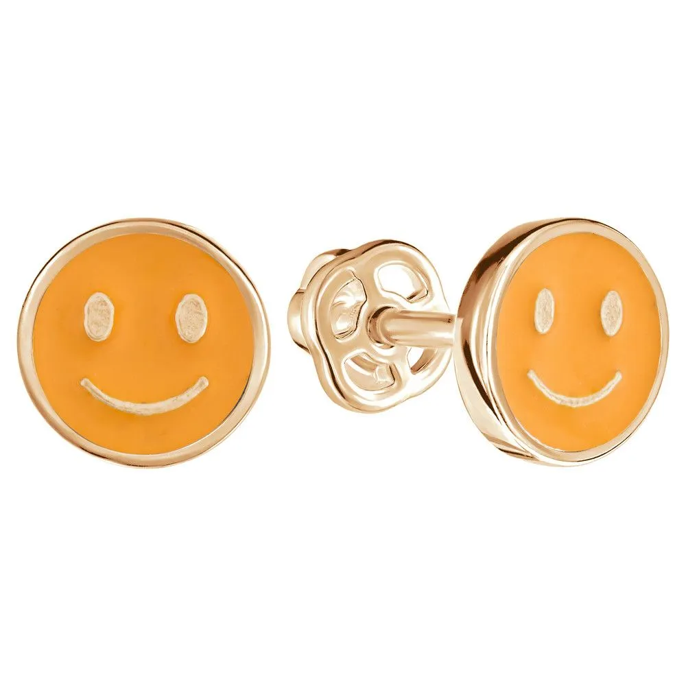 Серебряные серьги гвоздики Смайлик с эмалью - цвет желто-оранжевый / Розовое Золото. Средний вес ювелирного украшения 1.23 гр. Эмаль – холодная двухкомпонентная итальянская эмаль высокого качества. Имеет высокую степень устойчивости к царапинам и солнечному свету, ударам и механическим повреждениям.< /p> Все изделия собственного производства и имеют гарантию 12 месяцев. Арт. 8839PG.
