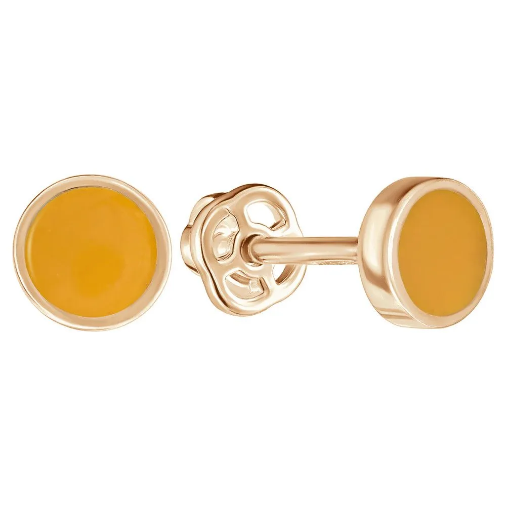 Серебряные серьги гвоздики (пусеты) с эмалью - цвет желто-оранжевый / Розовое Золото. Средний вес ювелирного украшения 0.86 гр. Эмаль – холодная двухкомпонентная итальянская эмаль высокого качества. Имеет высокую степень устойчивости к царапинам и солнечному свету, ударам и механическим повреждениям.< /p> Все изделия собственного производства и имеют гарантию 12 месяцев. Арт. 8845PG.