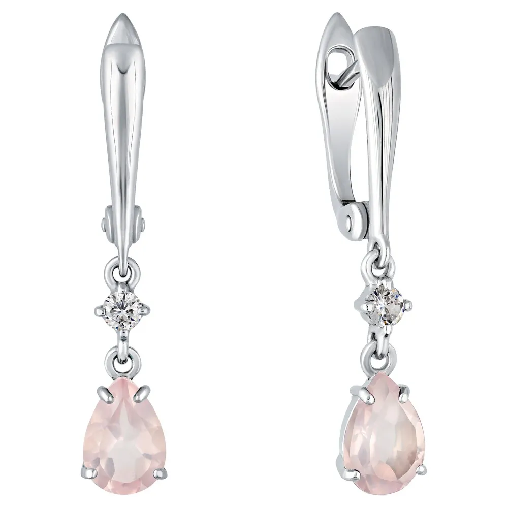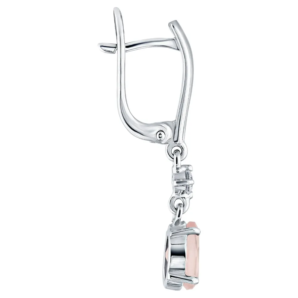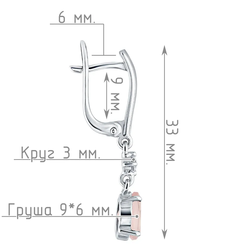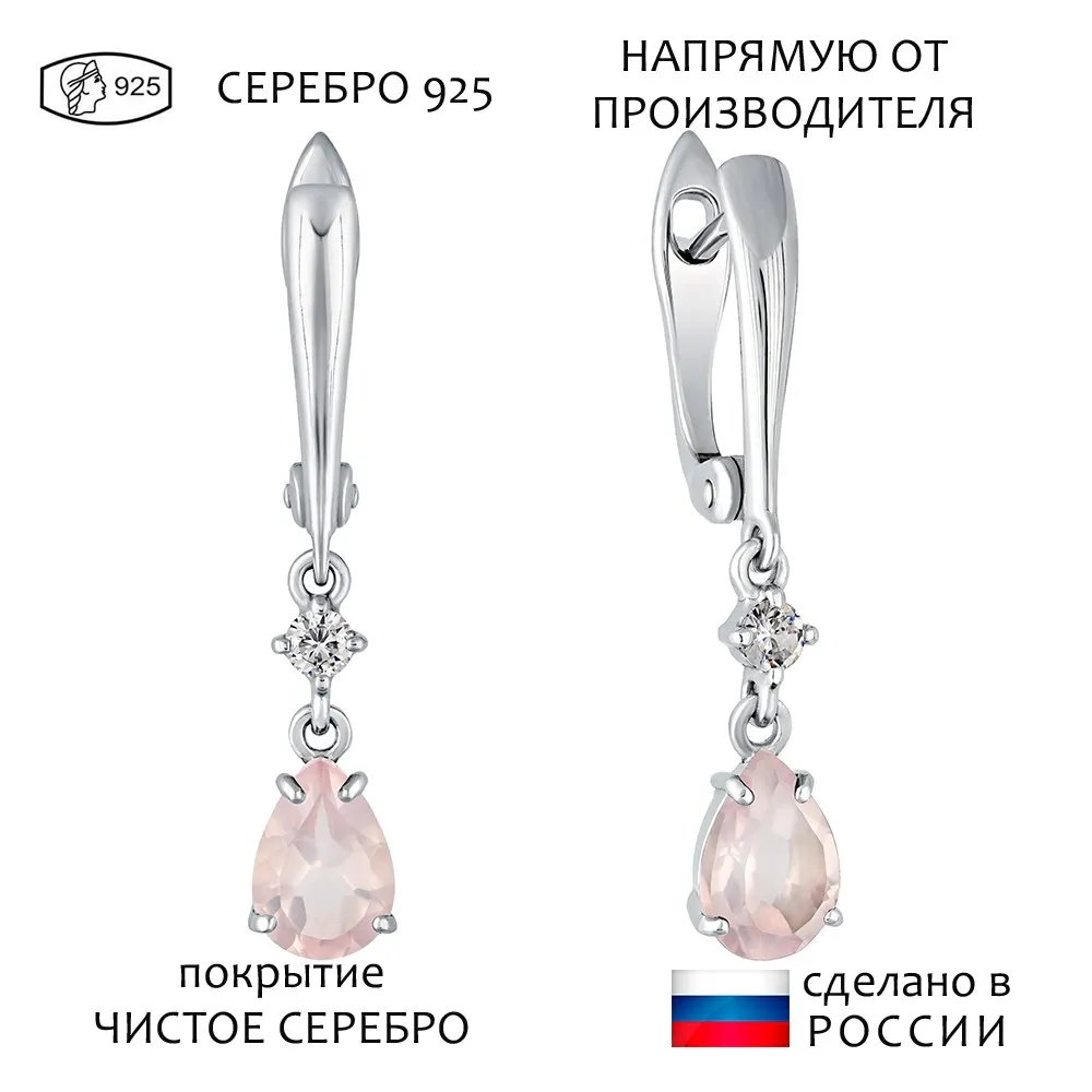 Серебряные серьги с натуральным розовым кварцем - коллекция Алсу (большая) / Чистое Серебро.