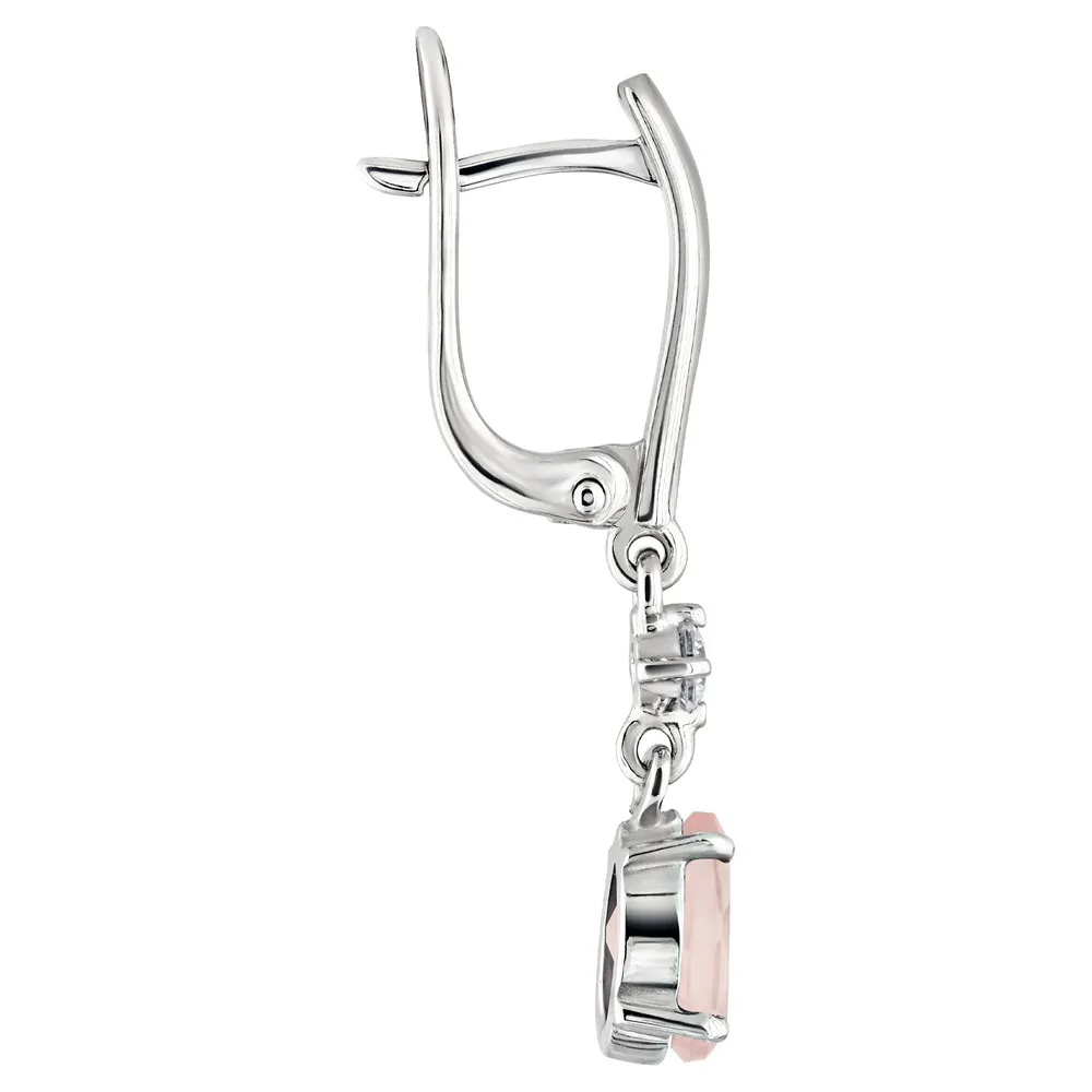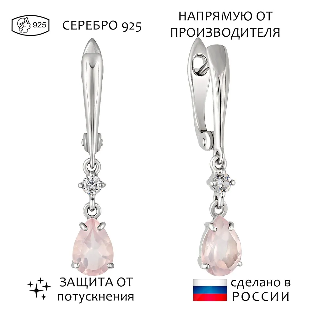 Серебряные серьги с натуральным розовым кварцем - коллекция Алсу (большая) / Без покрытия.