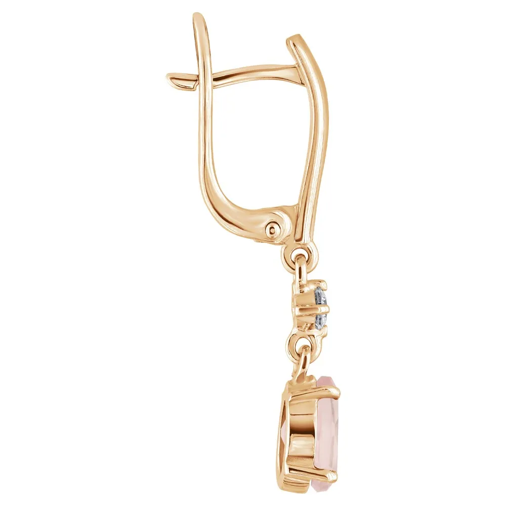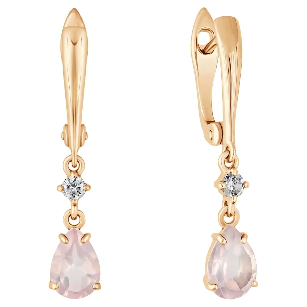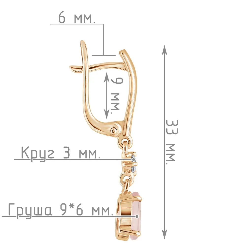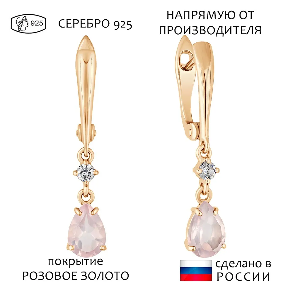 Серебряные серьги с натуральным розовым кварцем - коллекция Алсу (большая) / Розовое Золото.