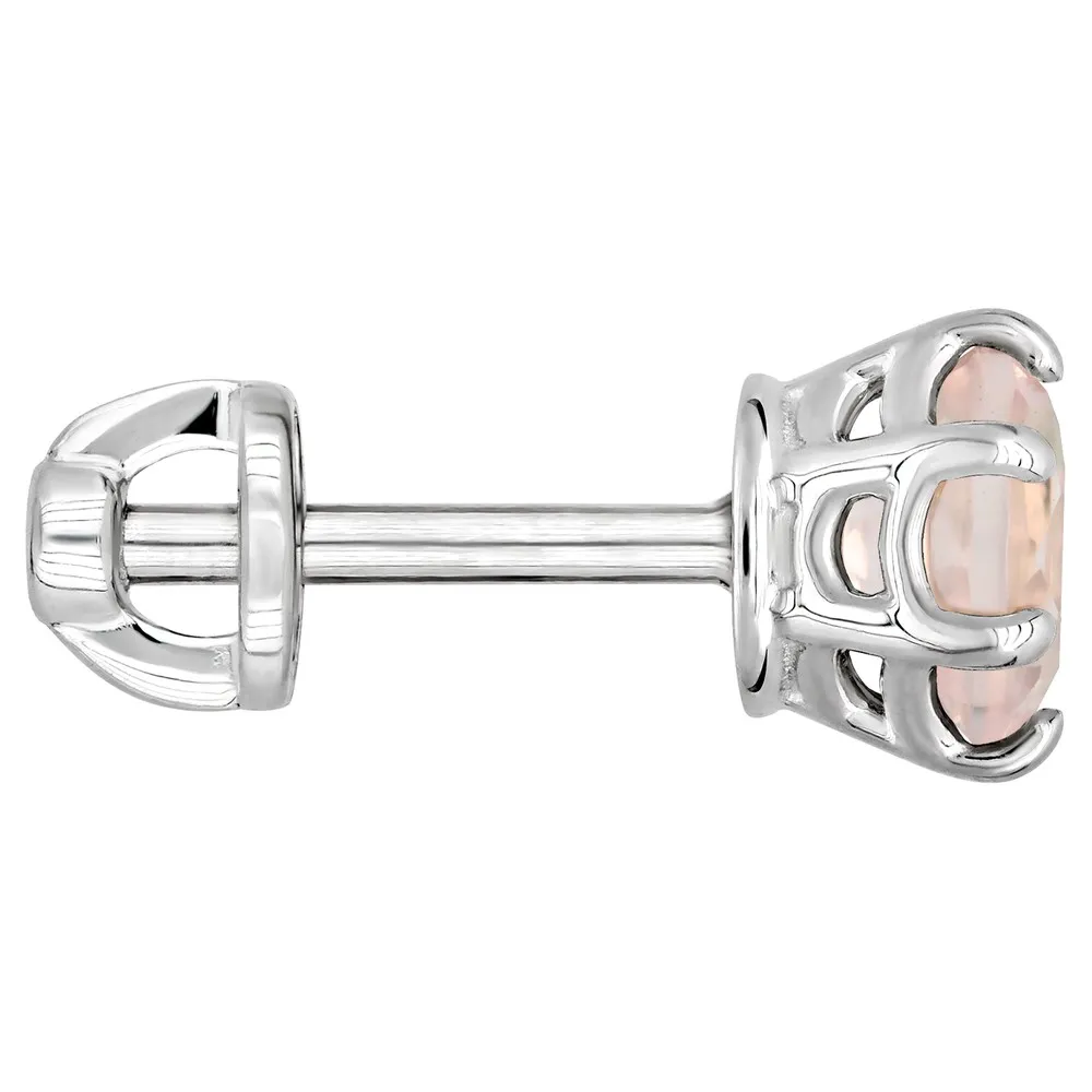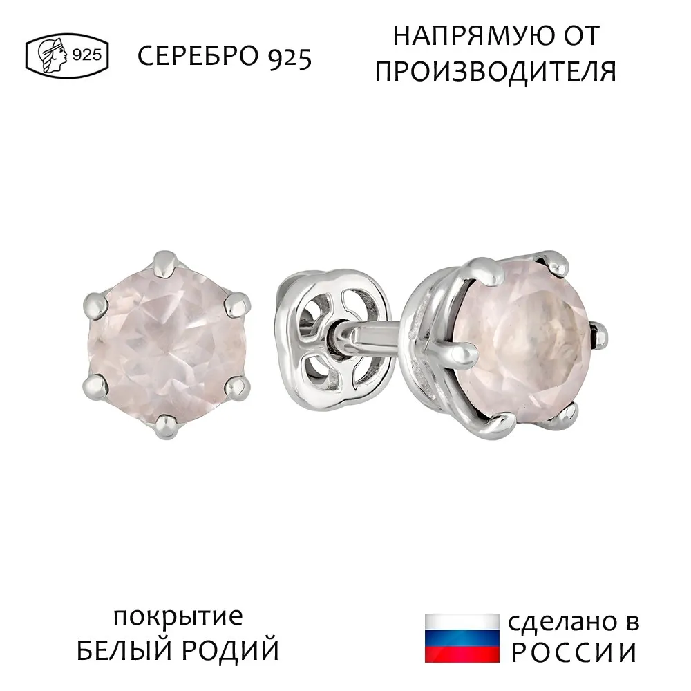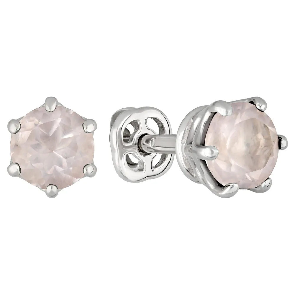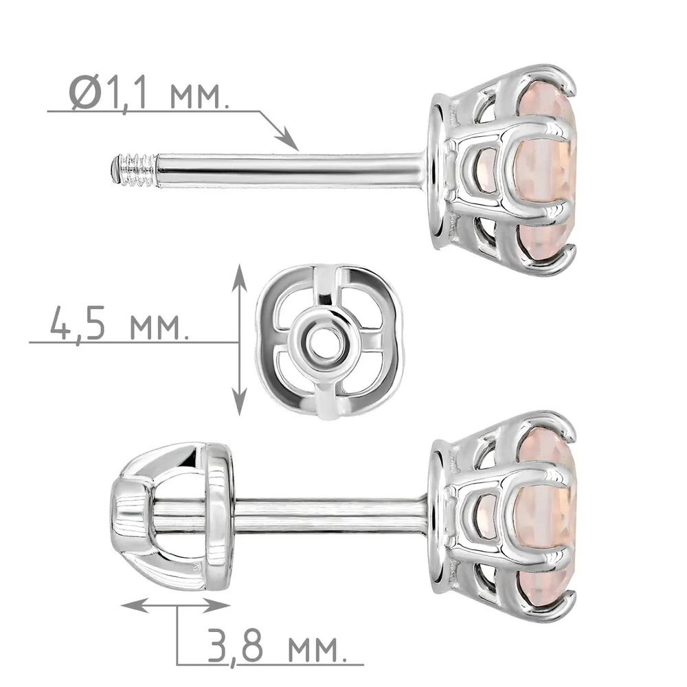 Серебряные серьги гвоздики (пусеты) с натуральным розовым кварцем 5 мм. / Белый Родий.